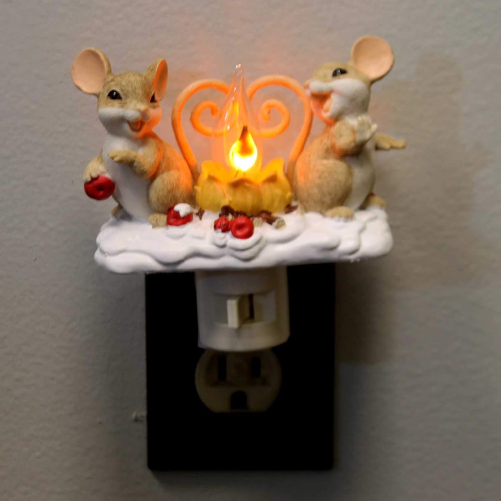 Campfire Friendly Mice 5 inch Swivel Base Plug in Flickering Night Light