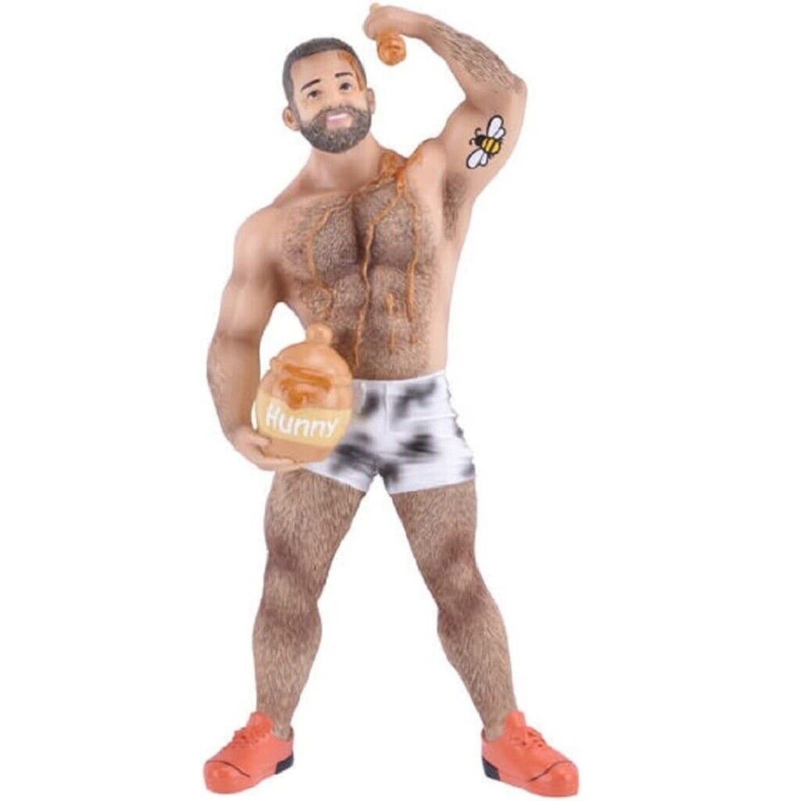 Honey Bear Ornament. Part of the Poke the Bear collection by December Diamonds. Made from hand painted resin. Approximately 7 inches tall.