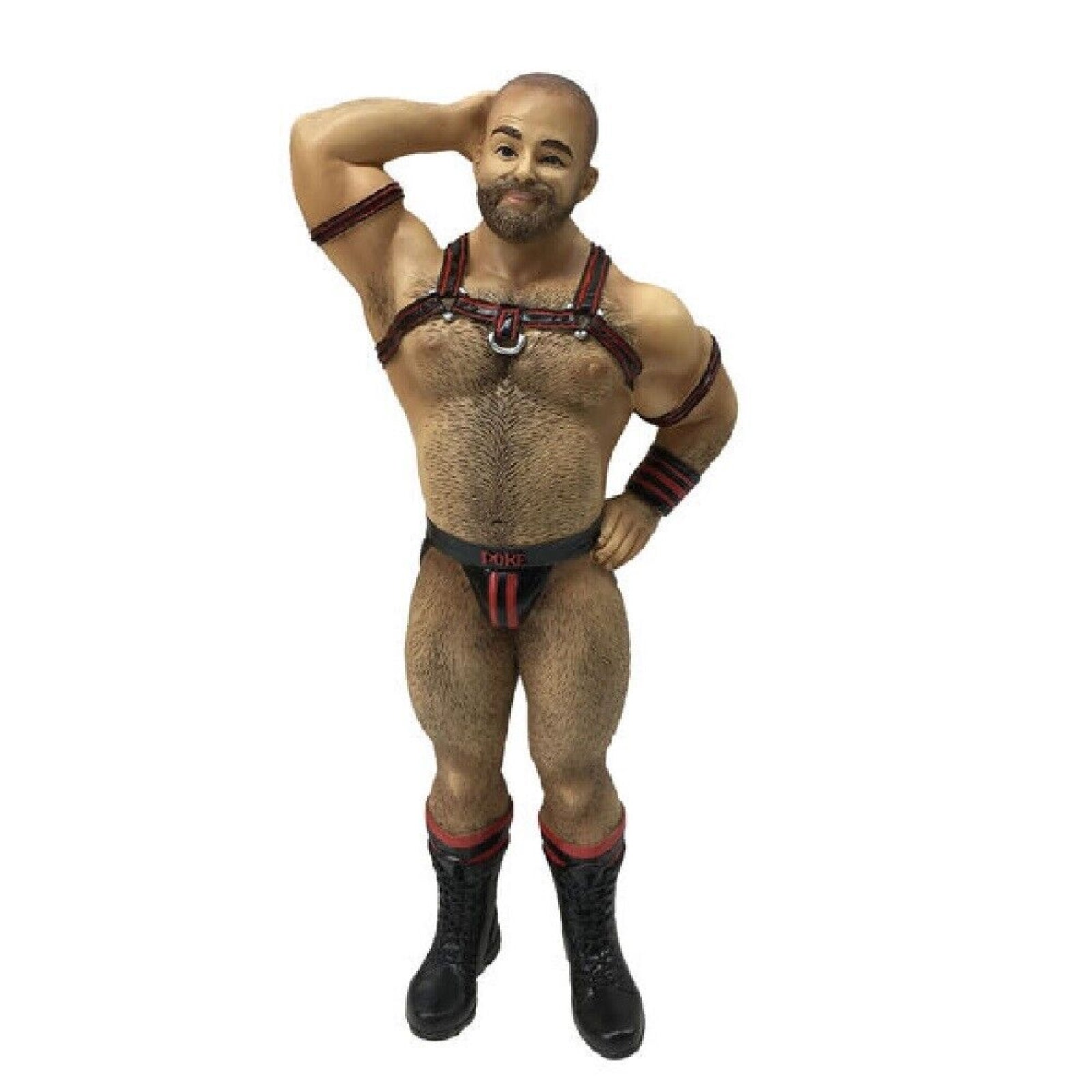 Poke The Bear Leather Bear Ornament. Made from resin. Approximately 7 inches tall.