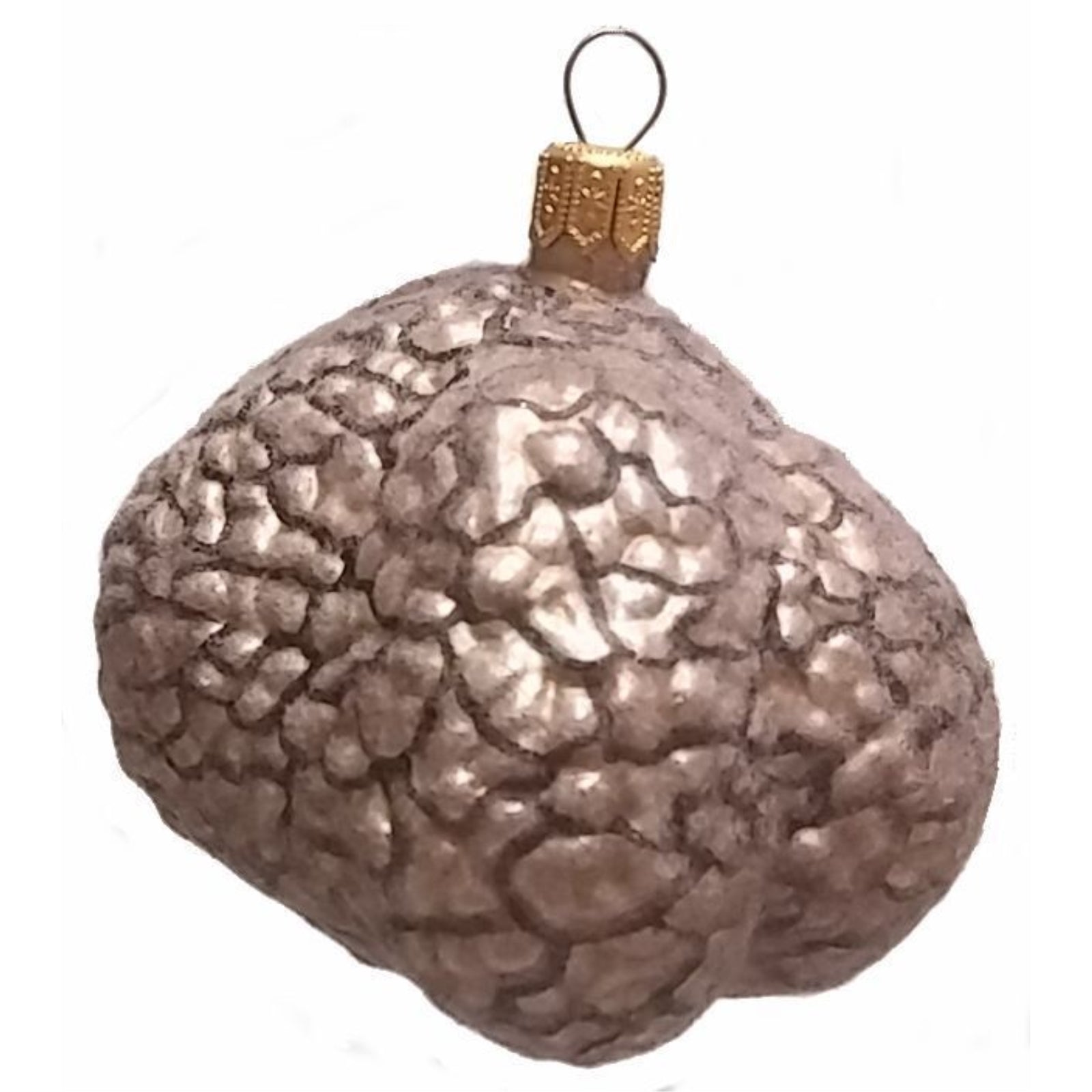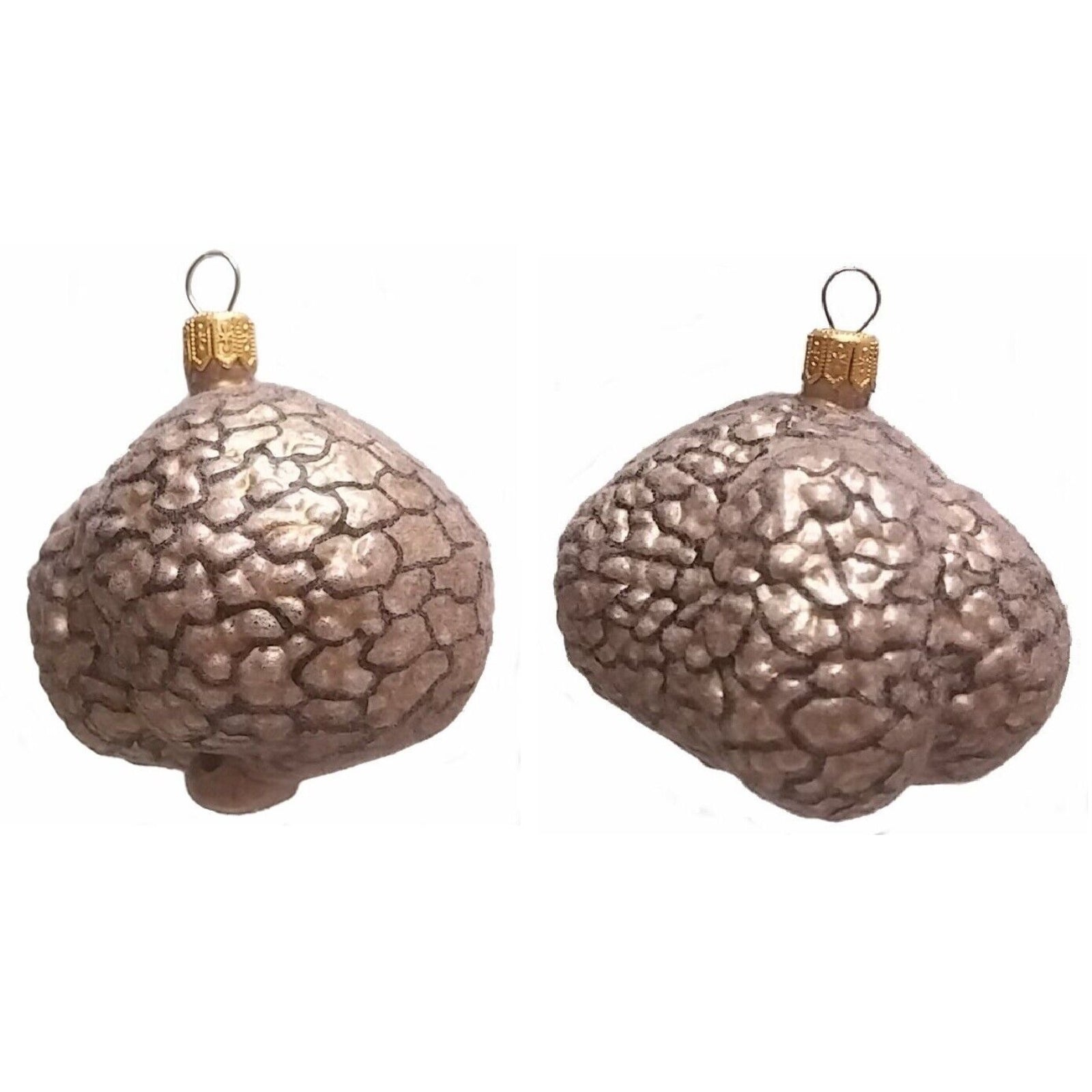 White Truffle Ornaments. Set of 2. Handcrafted in Poland. Hand-painted by Polish artisans. Made from mouth blown glass. Approximately 2.5 x 2.25 x 2.5 inches. Includes original Pinnacle Peak Trading box and packaging. Imported by Pinnacle Peak Trading.