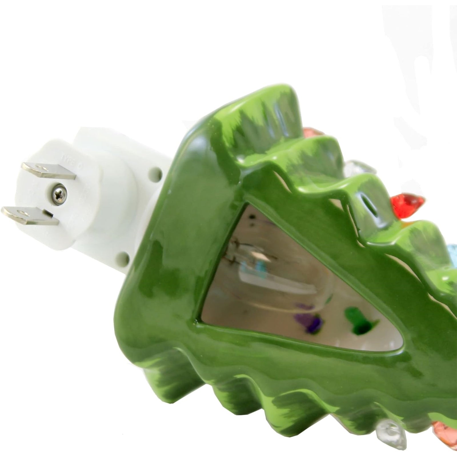 Christmas tree night light. Measurements: 4.2 in W x 3.7 D x 6.5 in H. Material: Ceramic. Replacement Bulb C7. Made by Ganz.