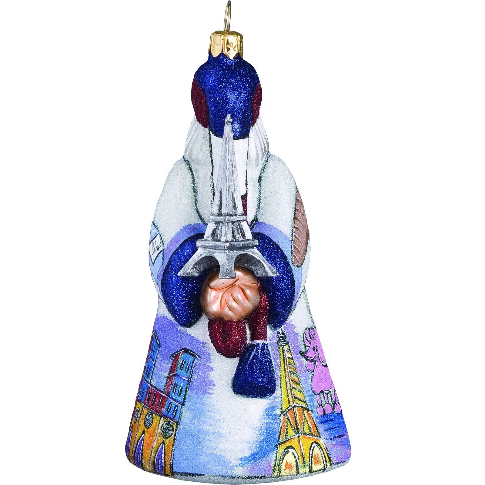 Glitterazzi France Santa with Eiffel Tower Polish Glass Christmas Ornament
