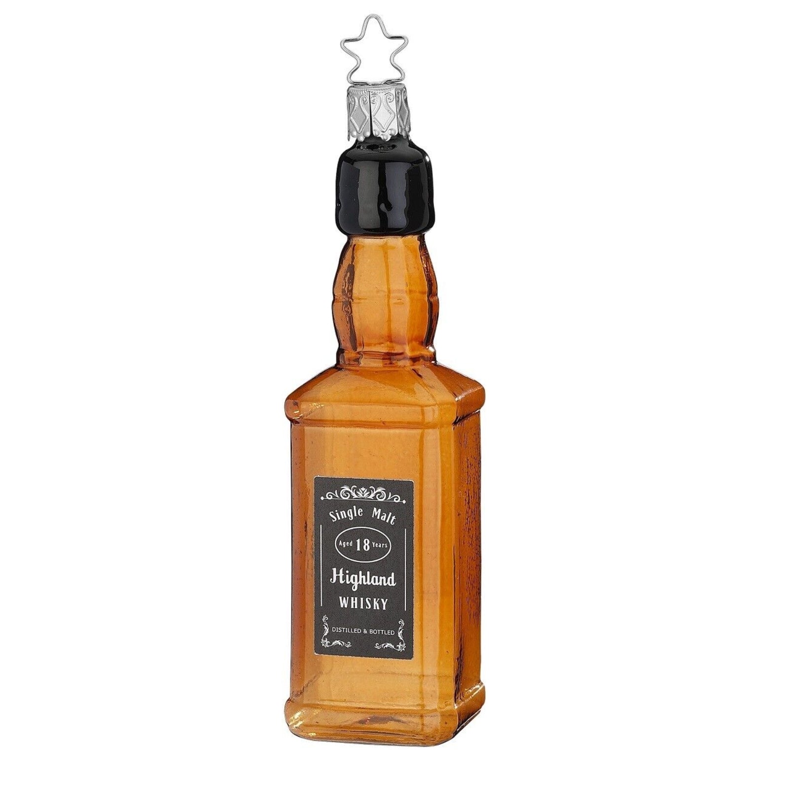 Highland Whisky Bottle Ornament. Size: Height: 5.2 inches. Made from glass. Made in Germany. Includes a FREE Inge Glas storage box.