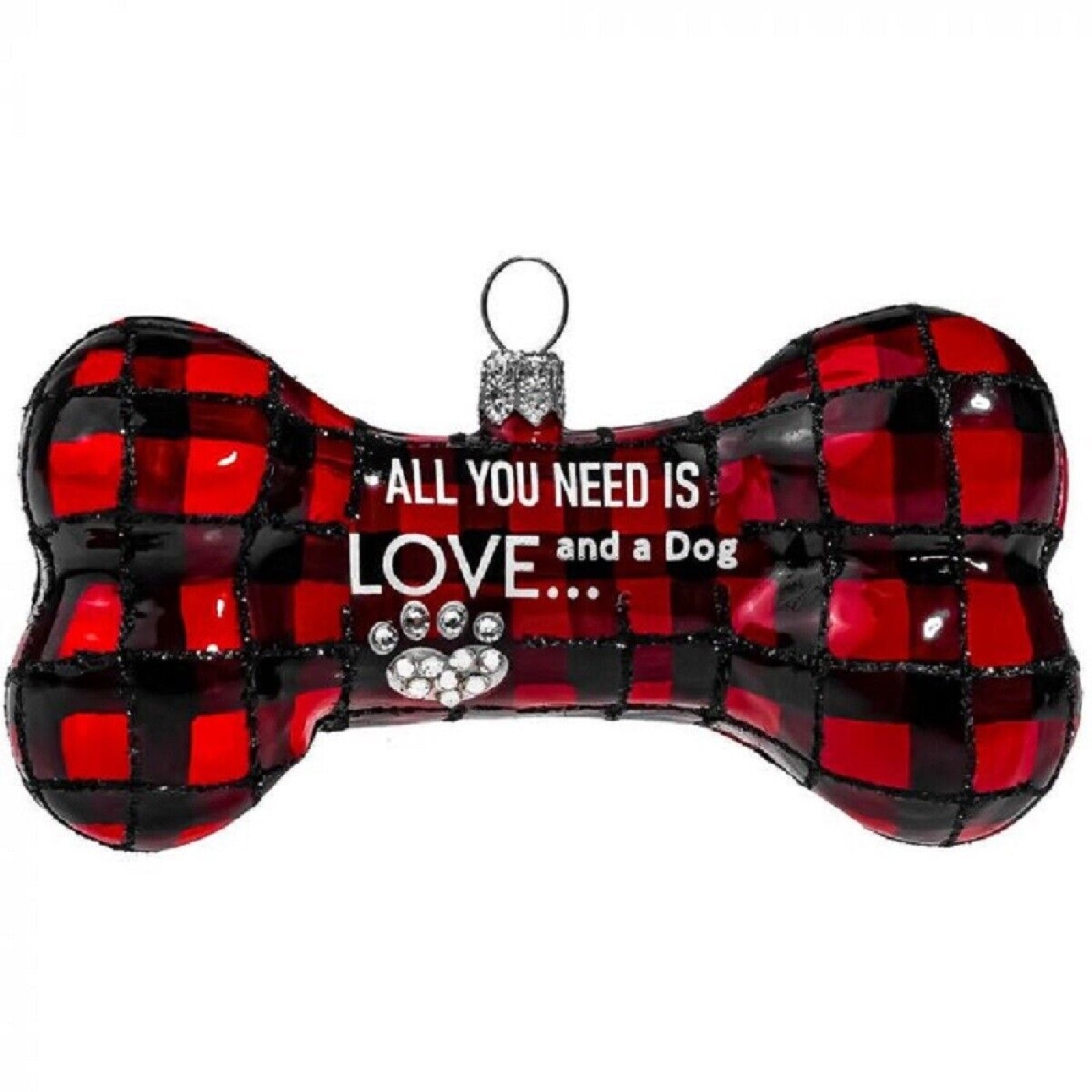Joy to the World All You Need is Love and a Dog Bone Polish Glass Christmas Ornament