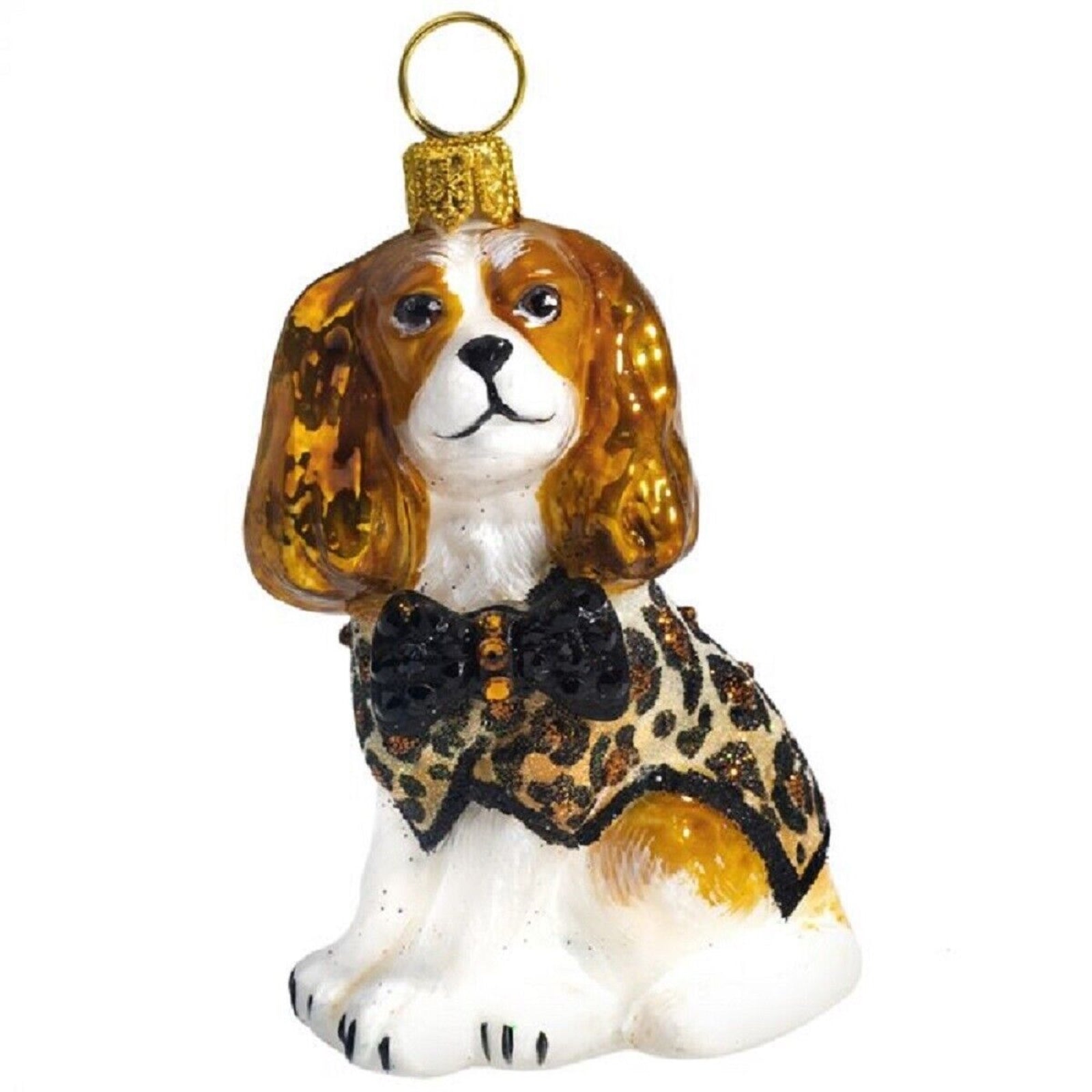 Joy to the World Blenheim Cavalier King Charles Spaniel Leopard Coat Crystal Bow Tie Ornament
