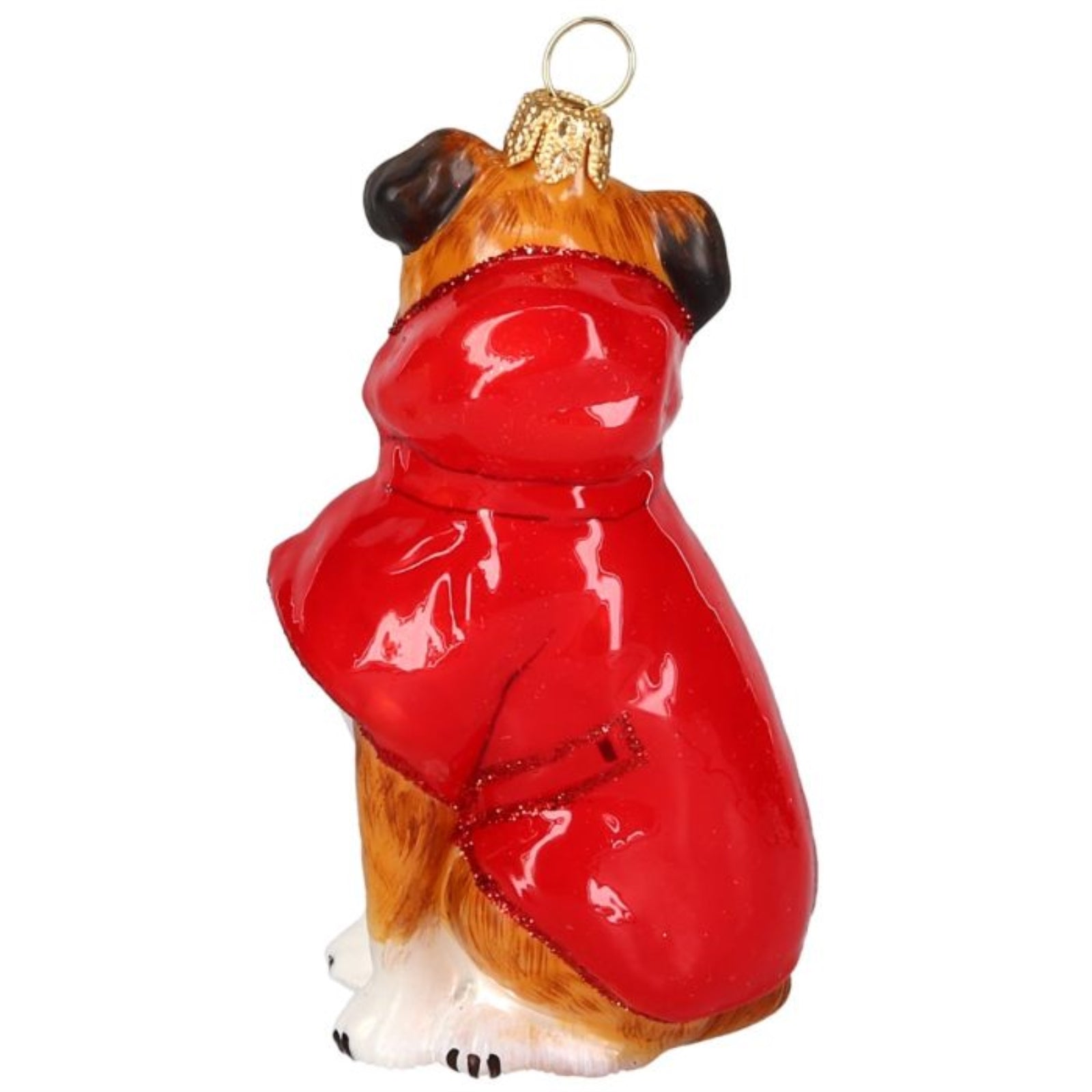 Joy to the World Boxer in Red Winter Coat Polish Glass Ornament