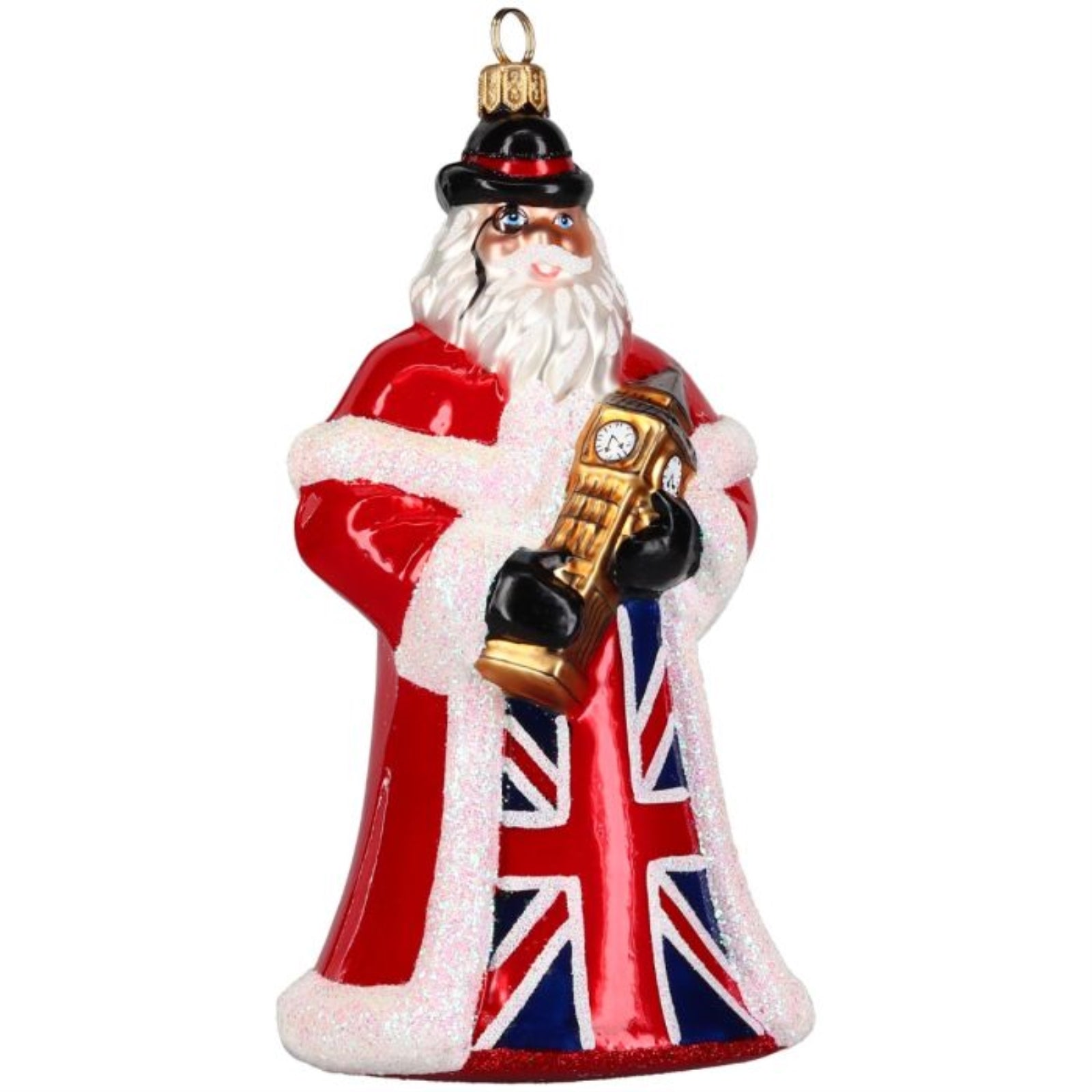 Joy to the World British Santa with Big Ben Polish Glass Ornament 6.4 Inch