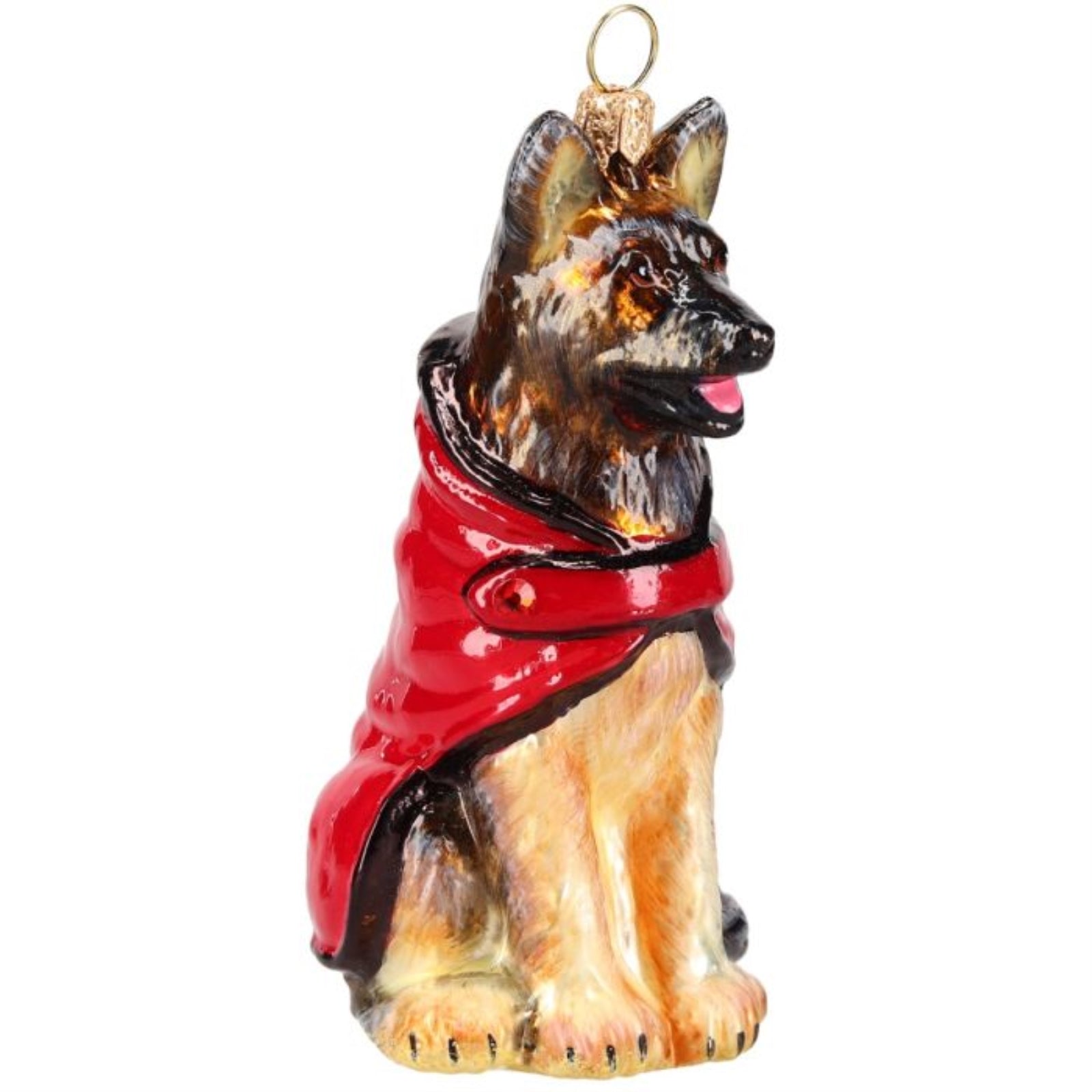 Joy to the World German Shepherd in Red and Black Jacket Polish Glass Ornament