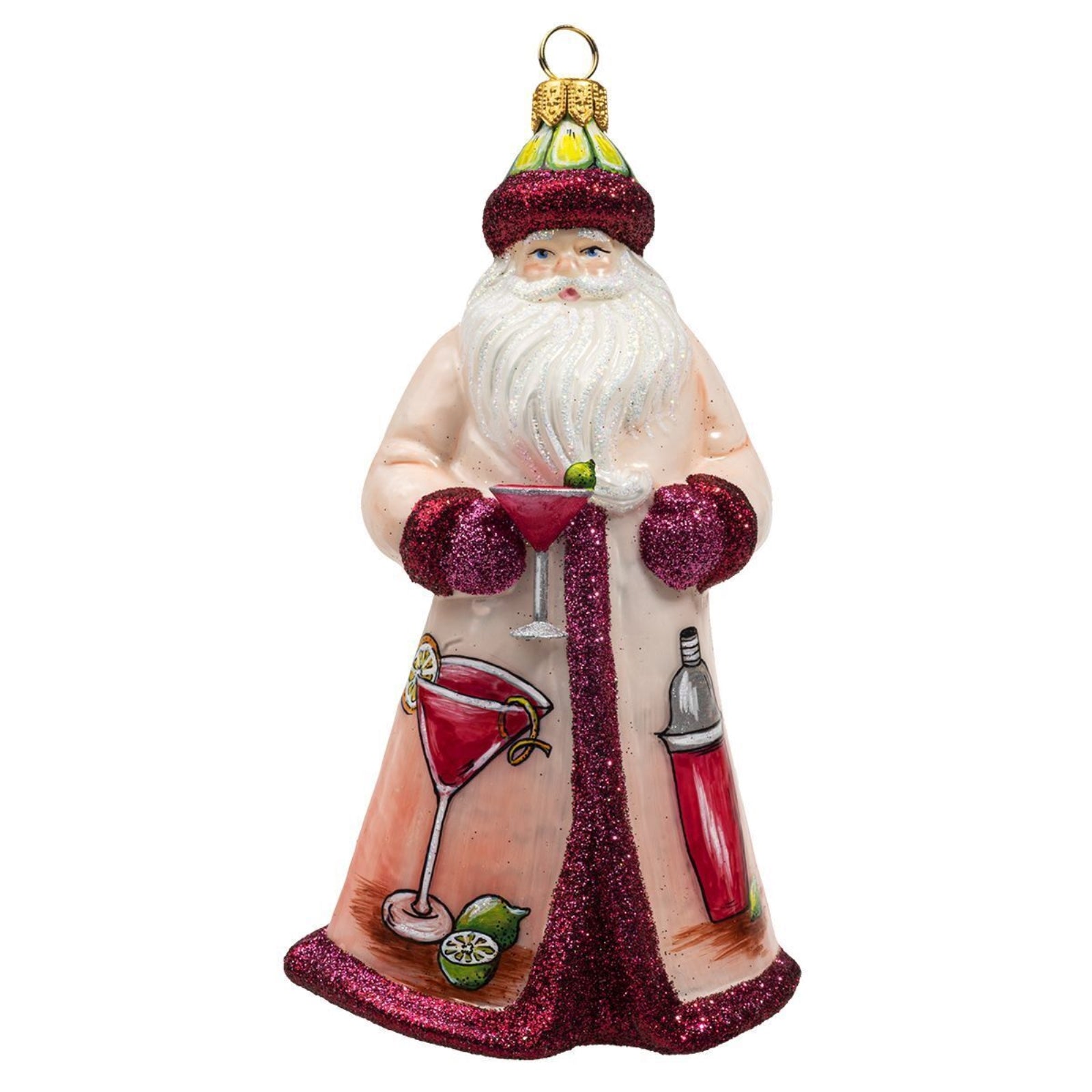 Joy to the World Glitterazzi Cosmopolitan Santa Polish Glass Christmas Ornament