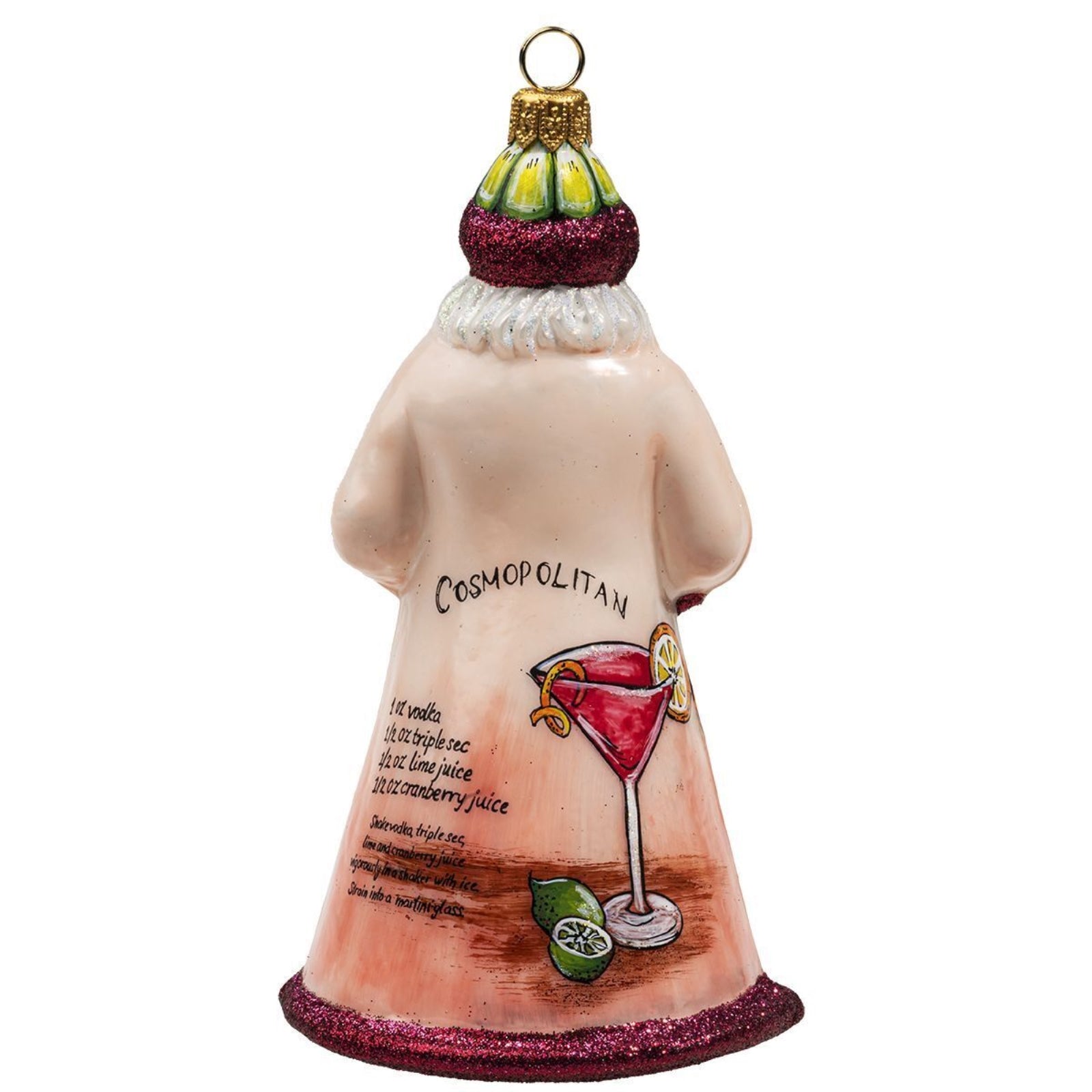 Glitterazzi Cosmopolitan Santa Ornament. Each ornament is hand painted with intricate breed details by Polish artisans in mouth-blown glass. Made from glass. Approximately 6 inches tall (15cm).