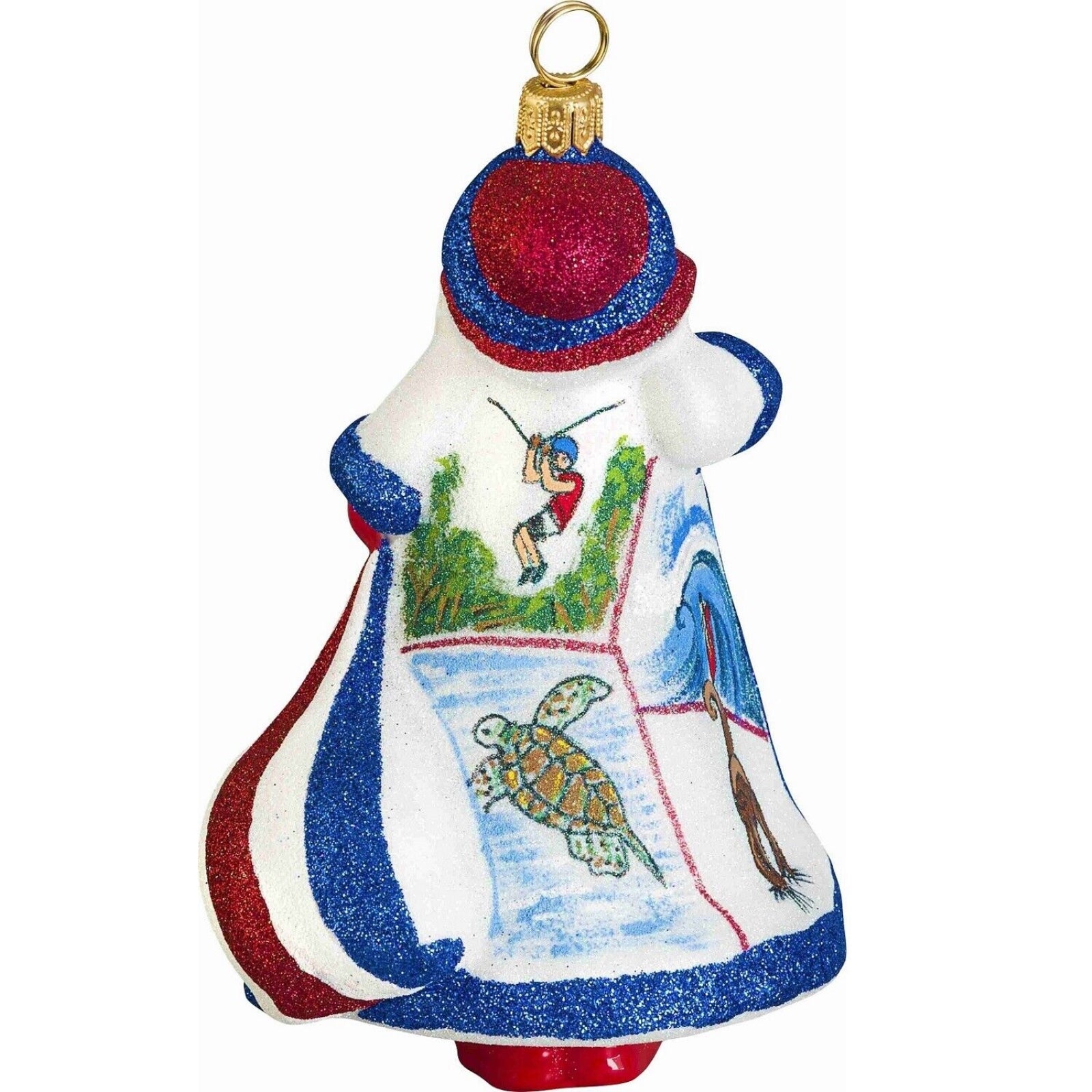 Costa Rica Santa Ornament. Each ornament is hand painted by Polish artisans. Made from mouth blown glass. Approximately 5 inches tall (13cm). Includes original manufacturers box and packaging. Made by Joy to the World.