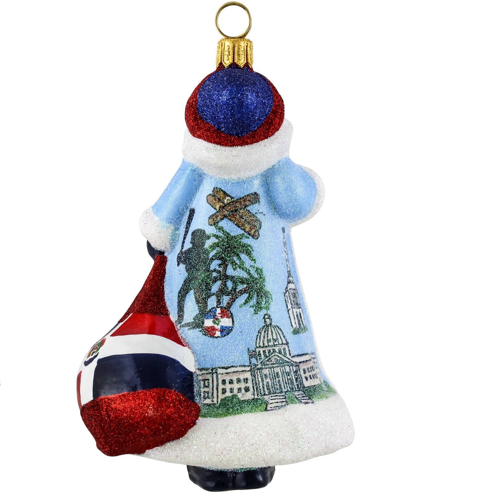 Joy to the World Glitterazzi Dominican Republic Santa Polish Glass Christmas Ornament