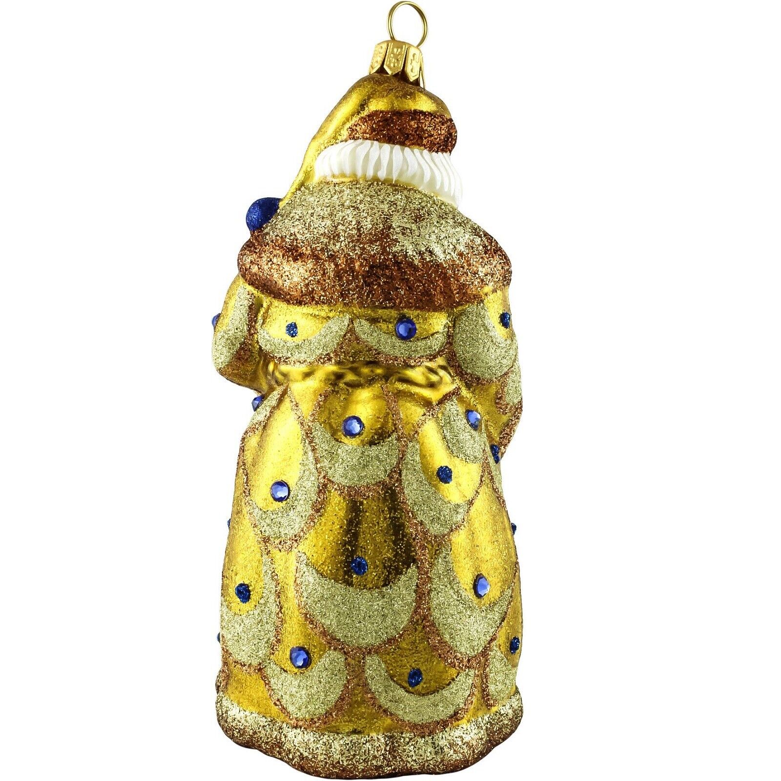 Joy to the World Glitterazzi Golden Peacock Santa Polish Glass Christmas Ornament