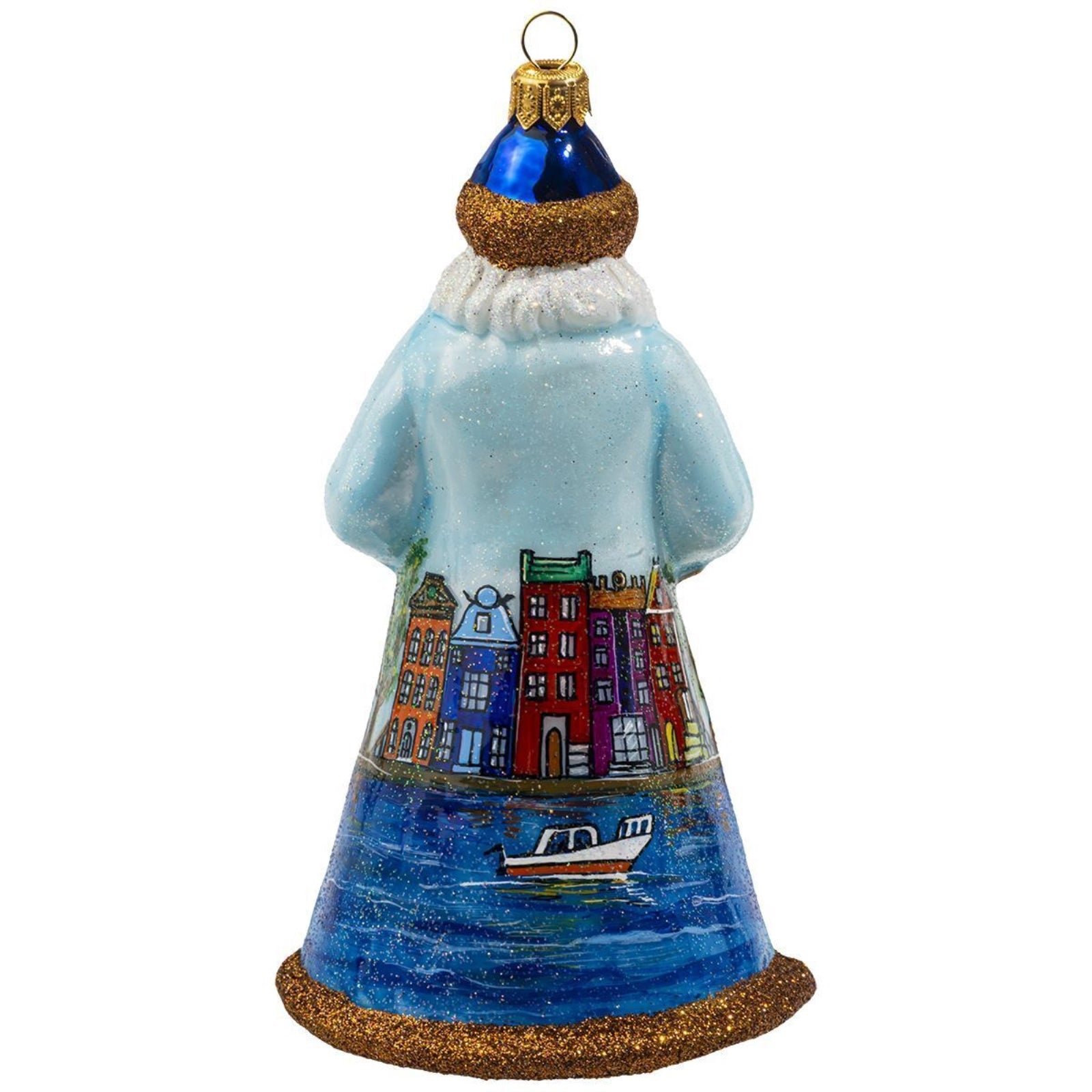 Glitterazzi Holland Santa with Windmill Ornament. Each ornament is hand painted with intricate breed details by Polish artisans in mouth-blown glass. Made from glass. Approximately 6 inches tall (15cm).