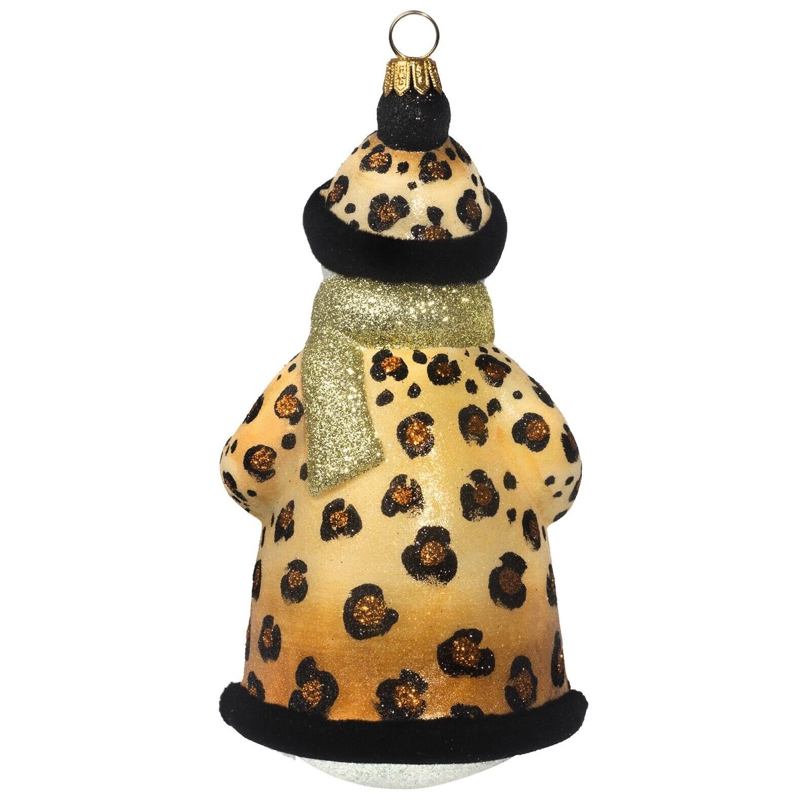 Joy to the World Glitterazzi Leopard Snowman Polish Glass Christmas Ornament