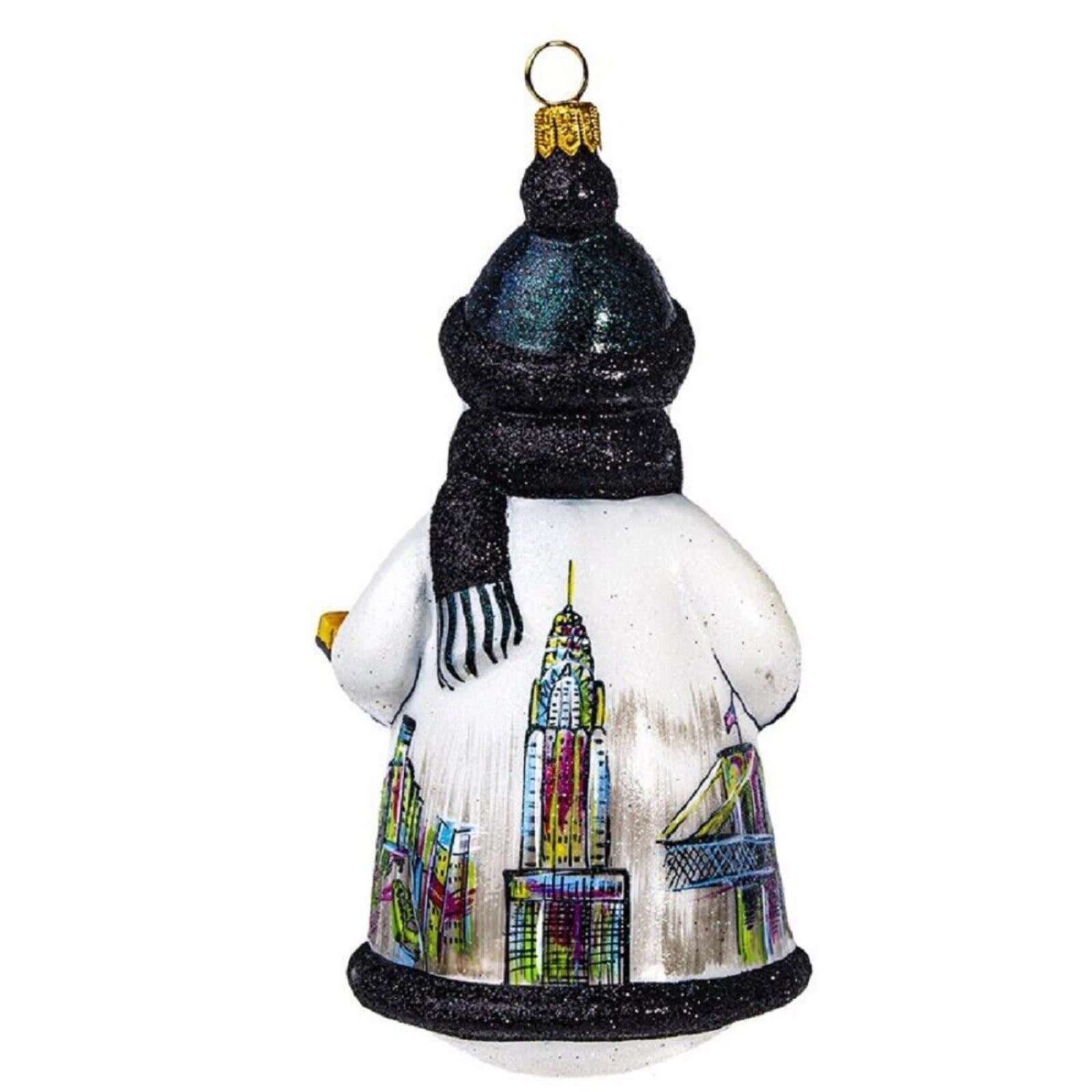Joy to the World Glitterazzi New York Snowman with Taxi Cab Polish Glass Christmas Ornament