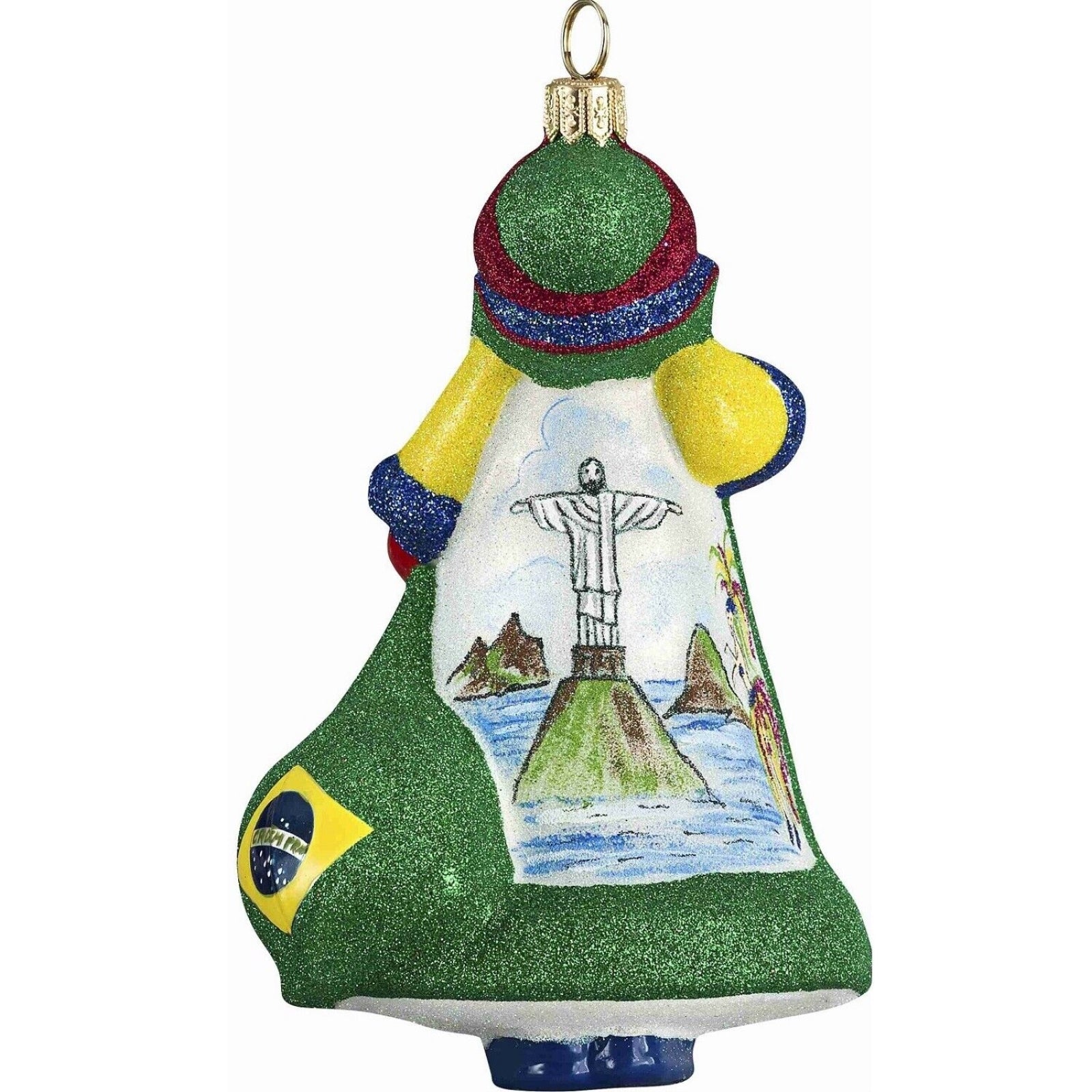 Rio Brazil Santa Ornament. Each ornament is hand painted by Polish artisans. Made from mouth blown glass. Approximately 5 inches tall (13 cm). Includes original manufacturers box and packaging. Made by Joy to the World.