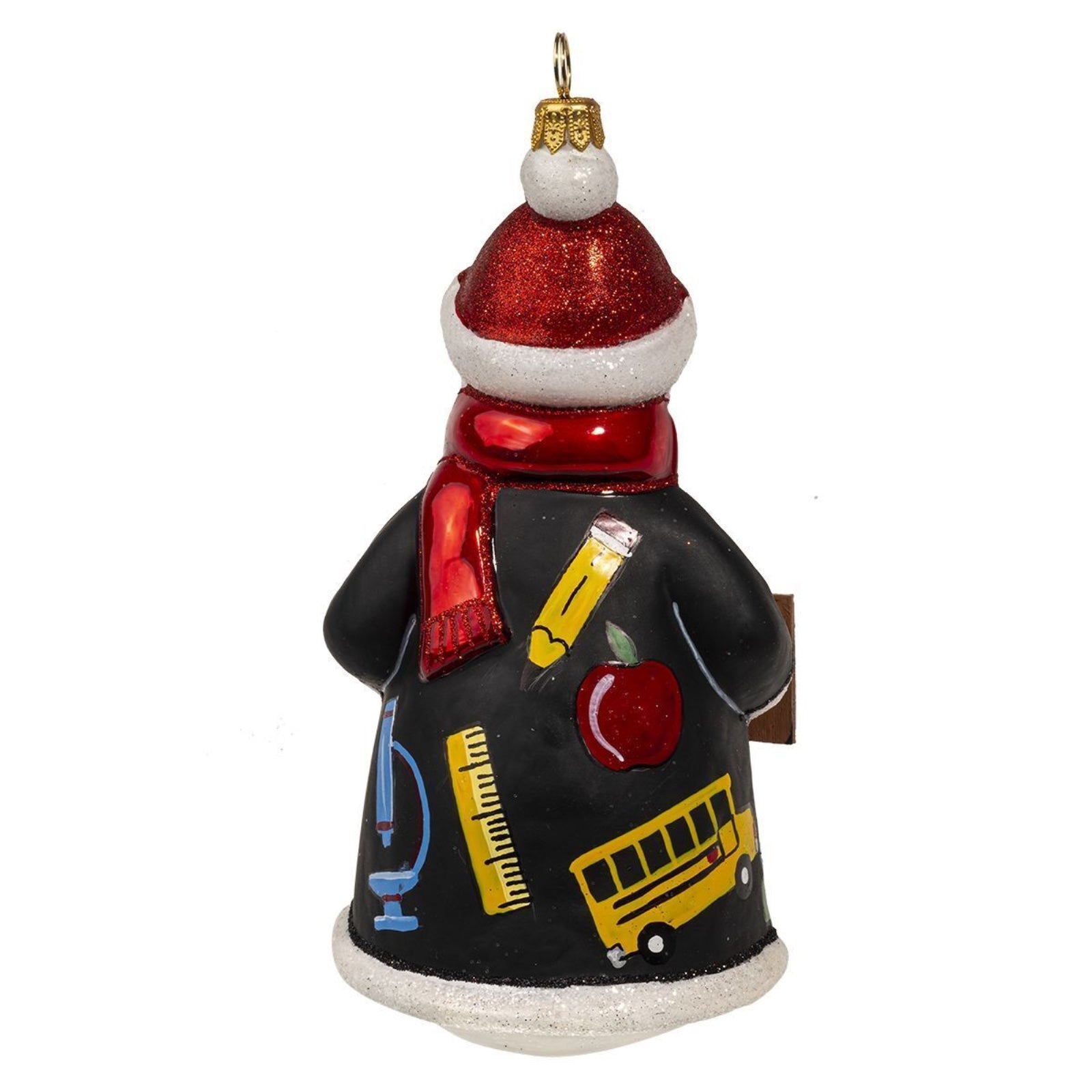Teacher Snowman Ornament. Handcrafted in Poland. Part of the Glitterazzi collection. Made from glass. Approximately 6 inches tall.