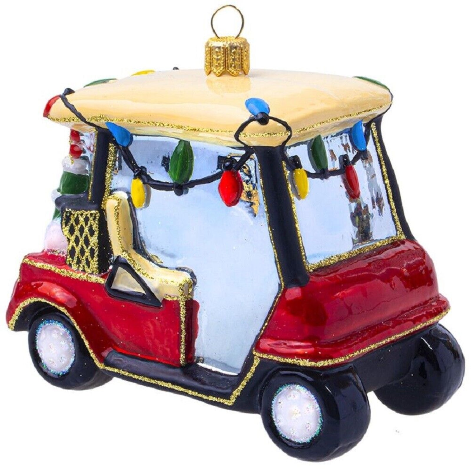 Joy to the World Holiday Golf Cart Polish Glass Christmas Ornament