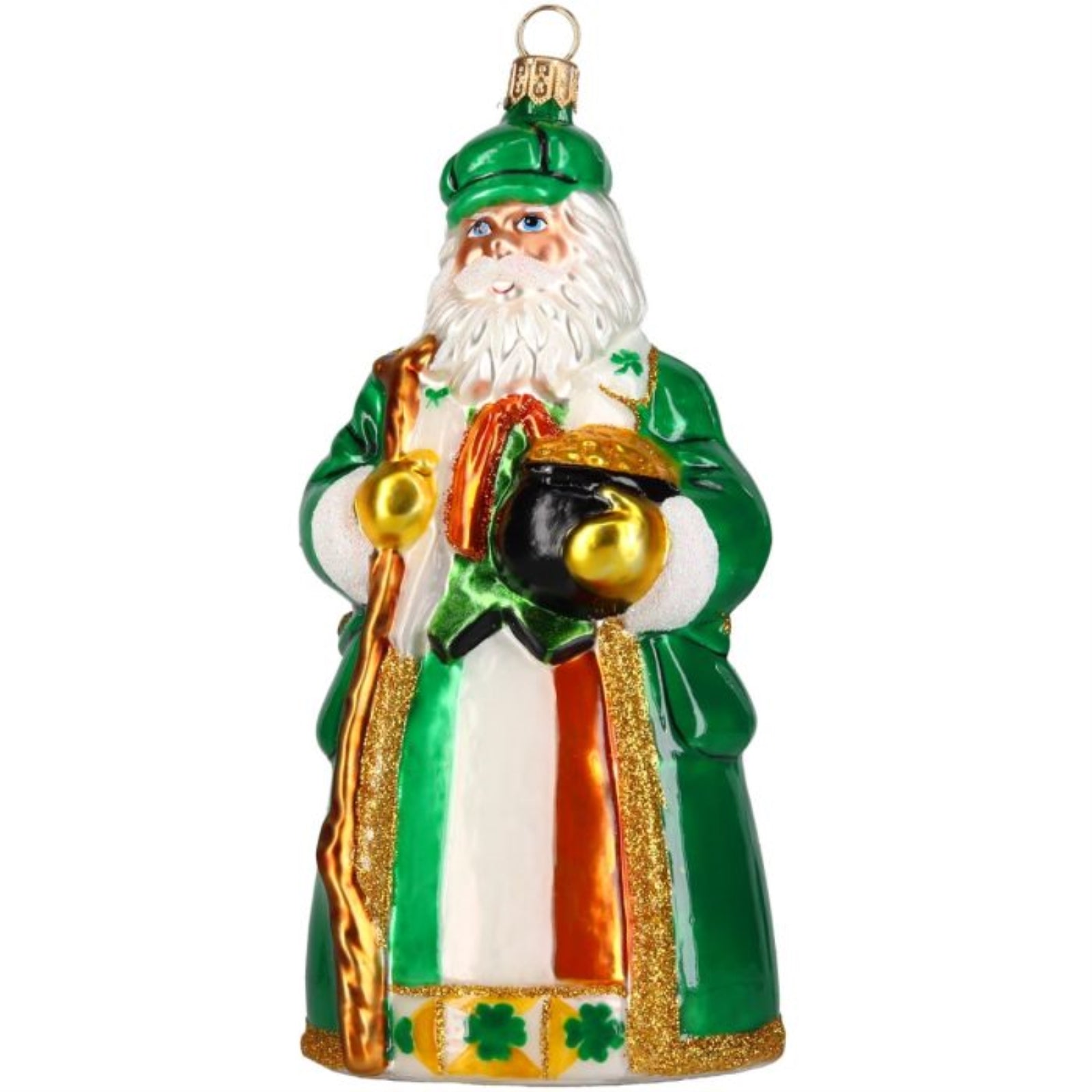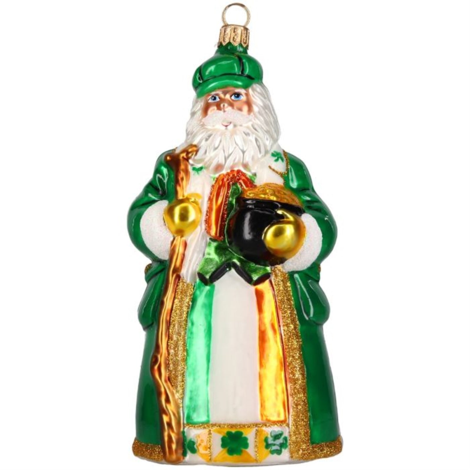 Joy to the World Ireland Santa with Pot of Gold Polish Glass Ornament 6.4 Inch