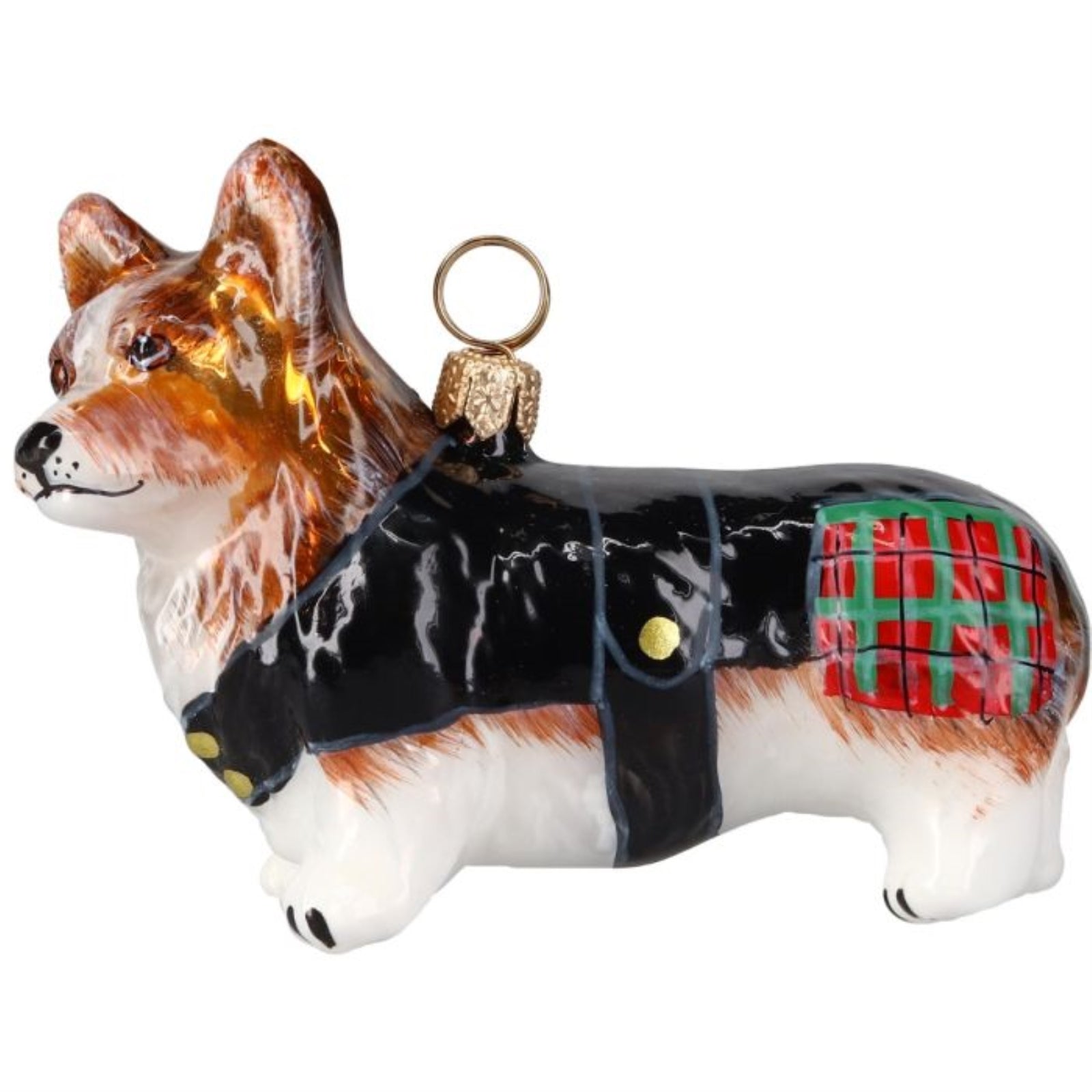 Joy to the World Pembroke Welsh Corgi in Kilt Polish Glass Ornament