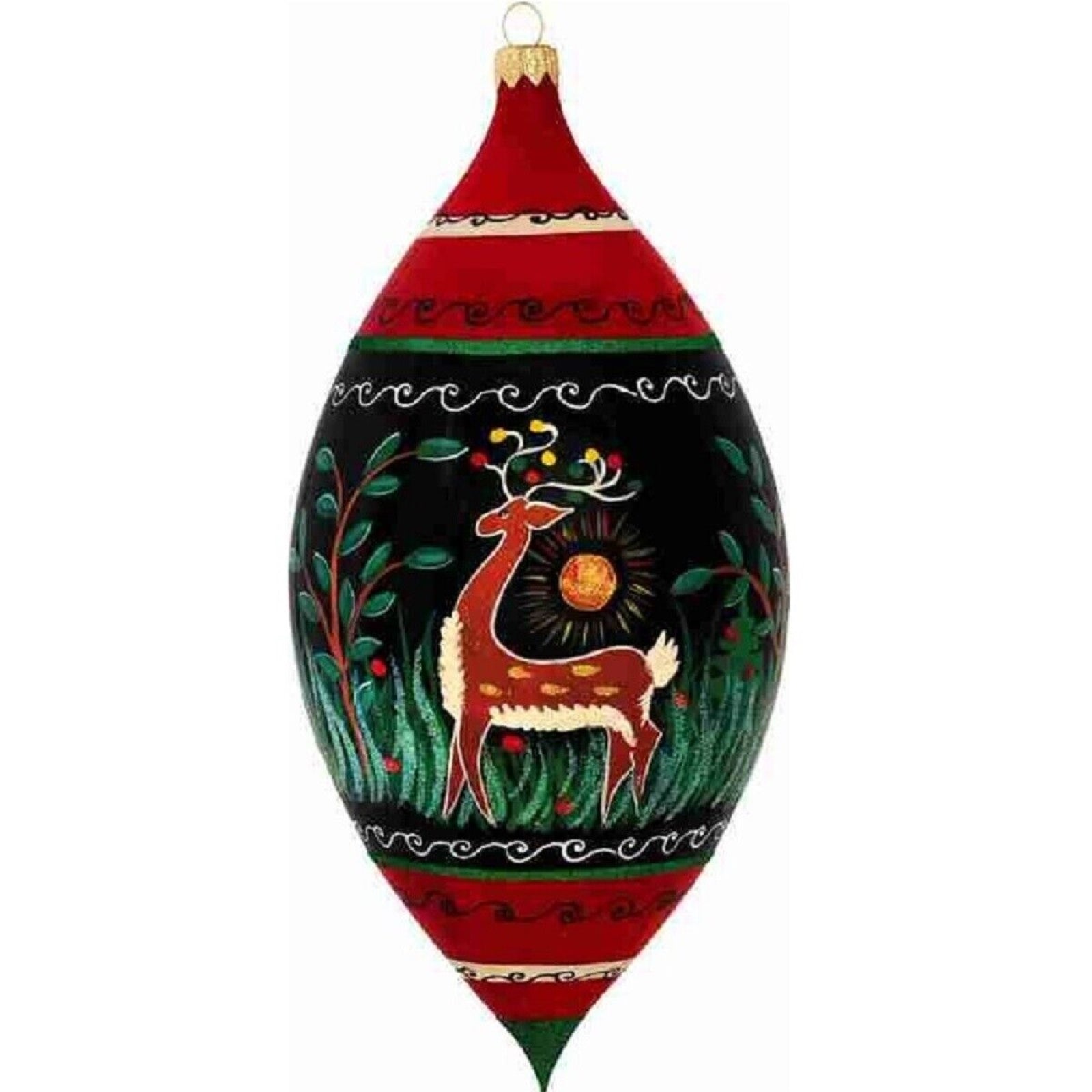 Each ornament is hand painted with intricate details by Polish artisans. Made from mouth blown glass. Approximately 9 inches tall. Made by Joy to the World.