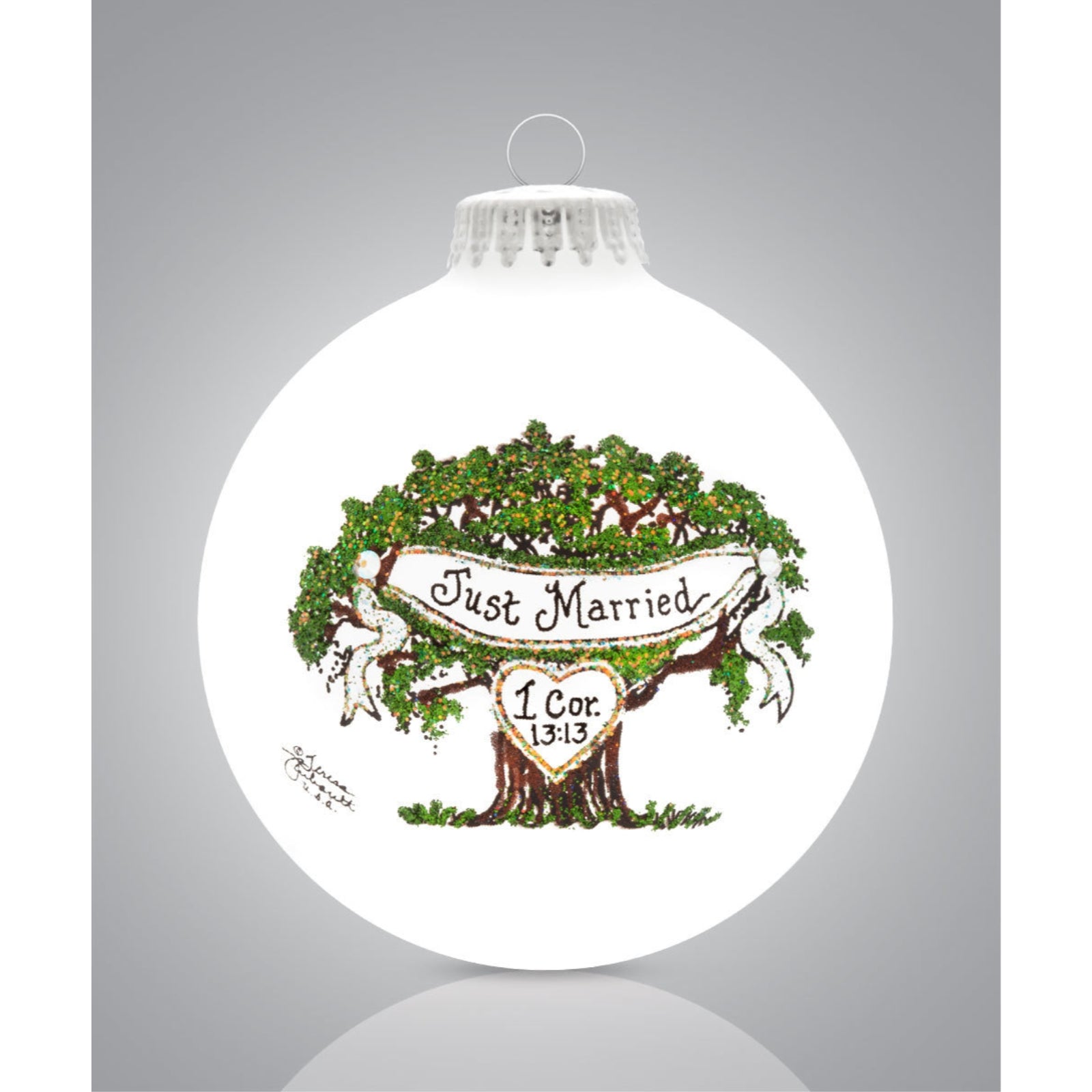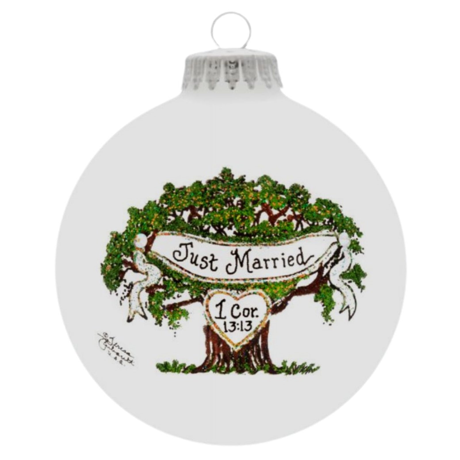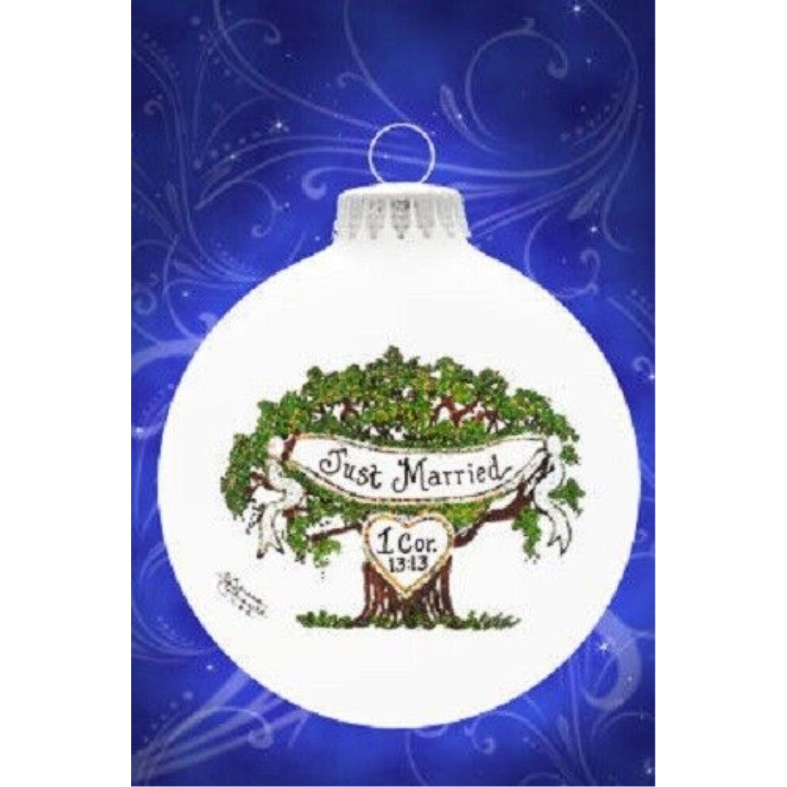 Just Married Tree Wedding Glass Christmas Ornament Made in the USA