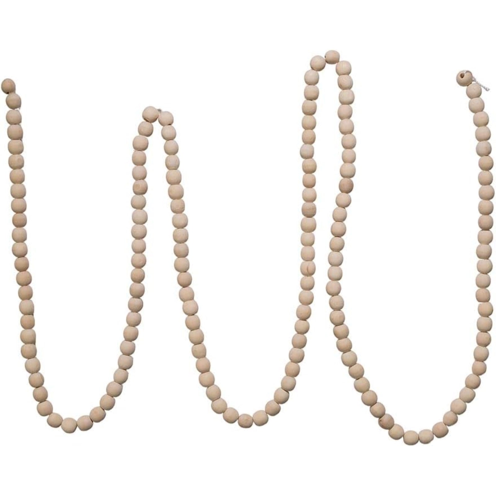 Natural Wood Beaded Garland. Made of wood. Item Size: 9-feet long.