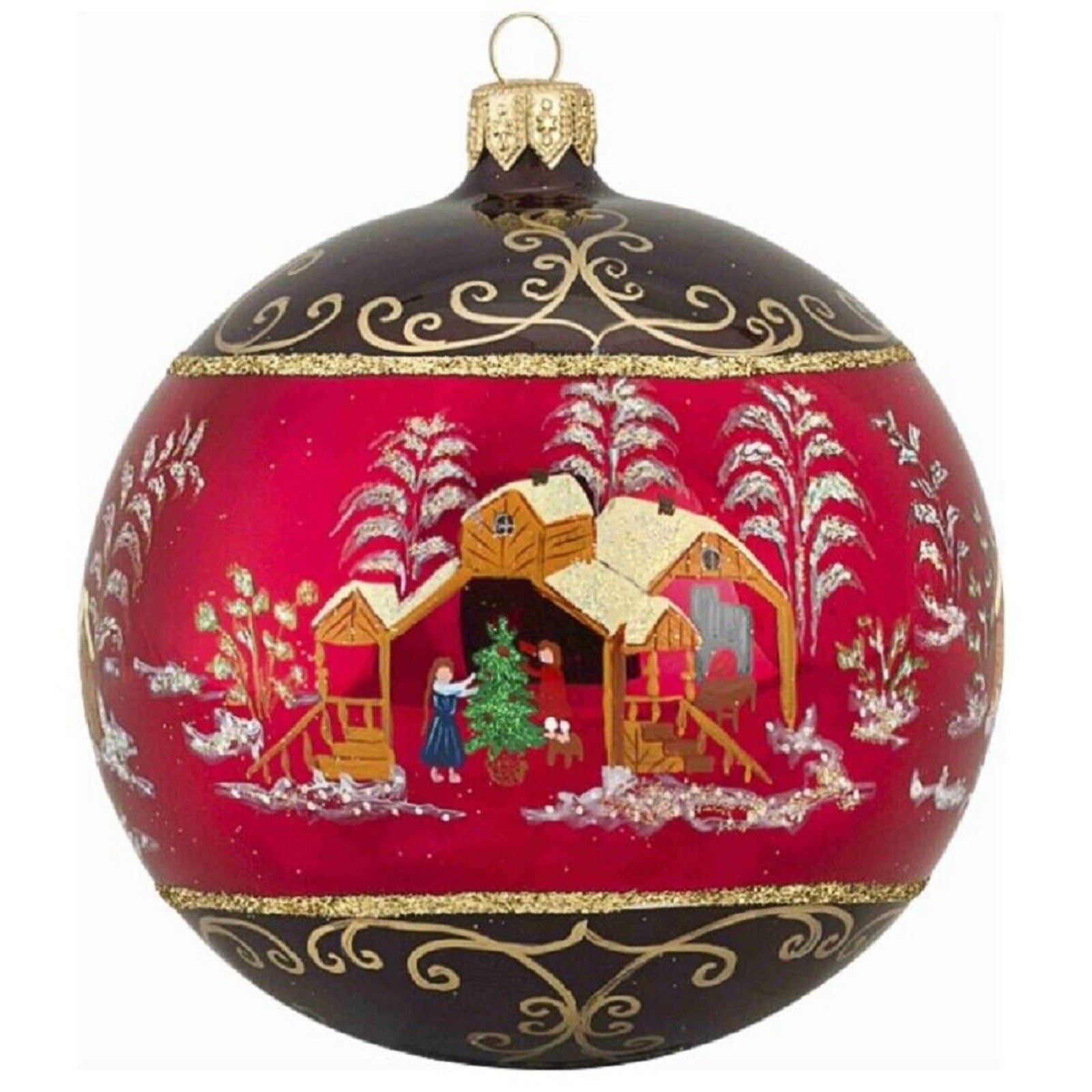 Red Russian Reflector Ball Ornament. Designed by Metzler Brothers. Each ornament is hand painted by Polish artisans. Made from mouth blown glass. Approximately 4 inches in diameter. Includes original manufacturers box and packaging. Made by Joy To The World.