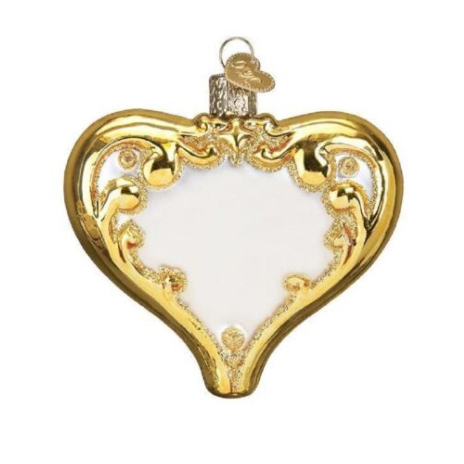 Old World Christmas 50th Anniversary Heart Ornament. 1 X 3.5 X 3.5 inches. Made from glass. Includes FREE Old World Christmas Gift Box. This beautiful 50th heart ornament is perfect for a 50th wedding anniversary or any other 50 year mark or occurrence in need of celebrations. The front and back have the same shiny, polished look gold edging with decorative designs and a white center. All sides are nicely detailed. It is made of blown glass, delicately hand-painted and has sparkly glittered accents.