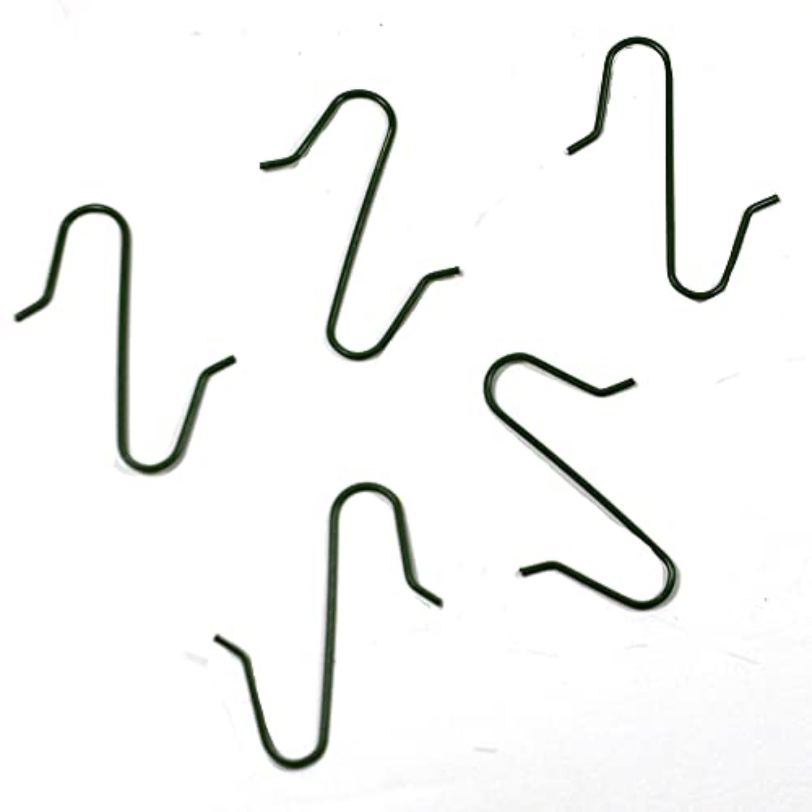Green Ornament Hangers. Comes with 100 hangers. Approximately 1.25 inches tall (3 cm). Made from metal. Comes packaged in a box. Made by Old World Christmas