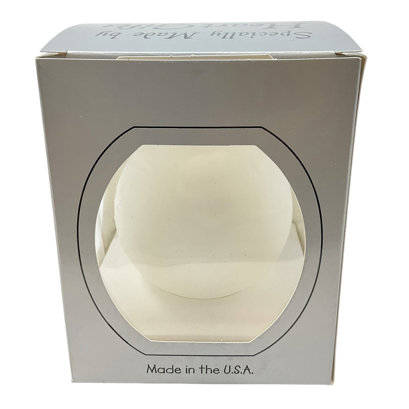 Our First Christmas Together Meet Me Under the Mistletoe Ornament. Hand painted in the USA. Made from glass. Approximately 3 inches in diameter. Includes original manufacturers box and packaging. Made by Heart Gifts by Teresa. Hearts Gifts by Teresa was born in my Concord, North Carolina home at my kitchen table in 1992. Today, Heart Gifts by Teresa creates original, hand painted keepsakes for year-round giving.