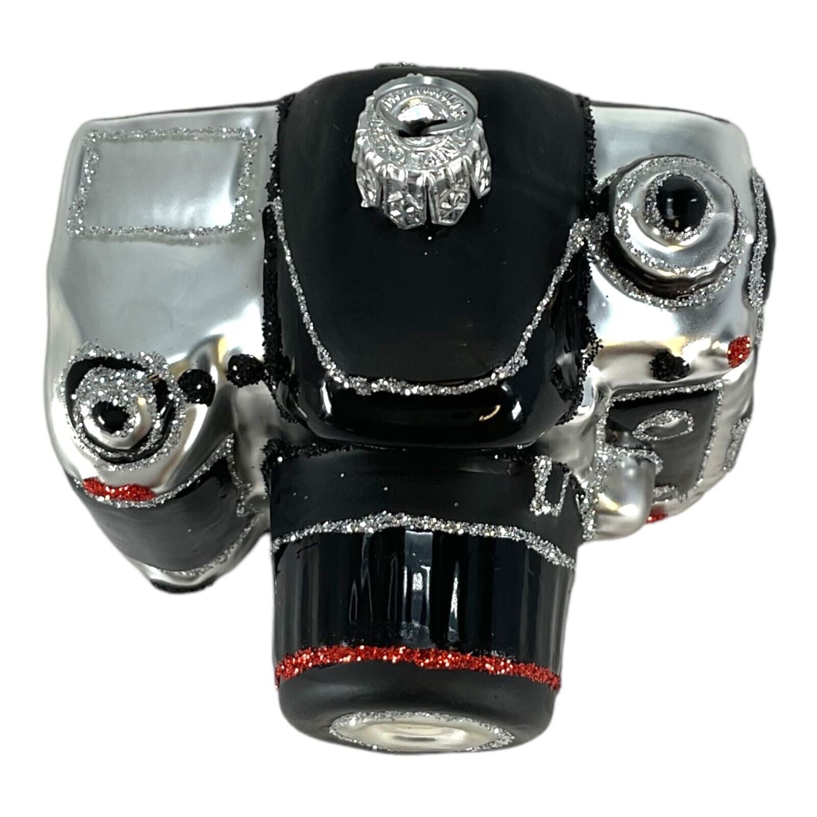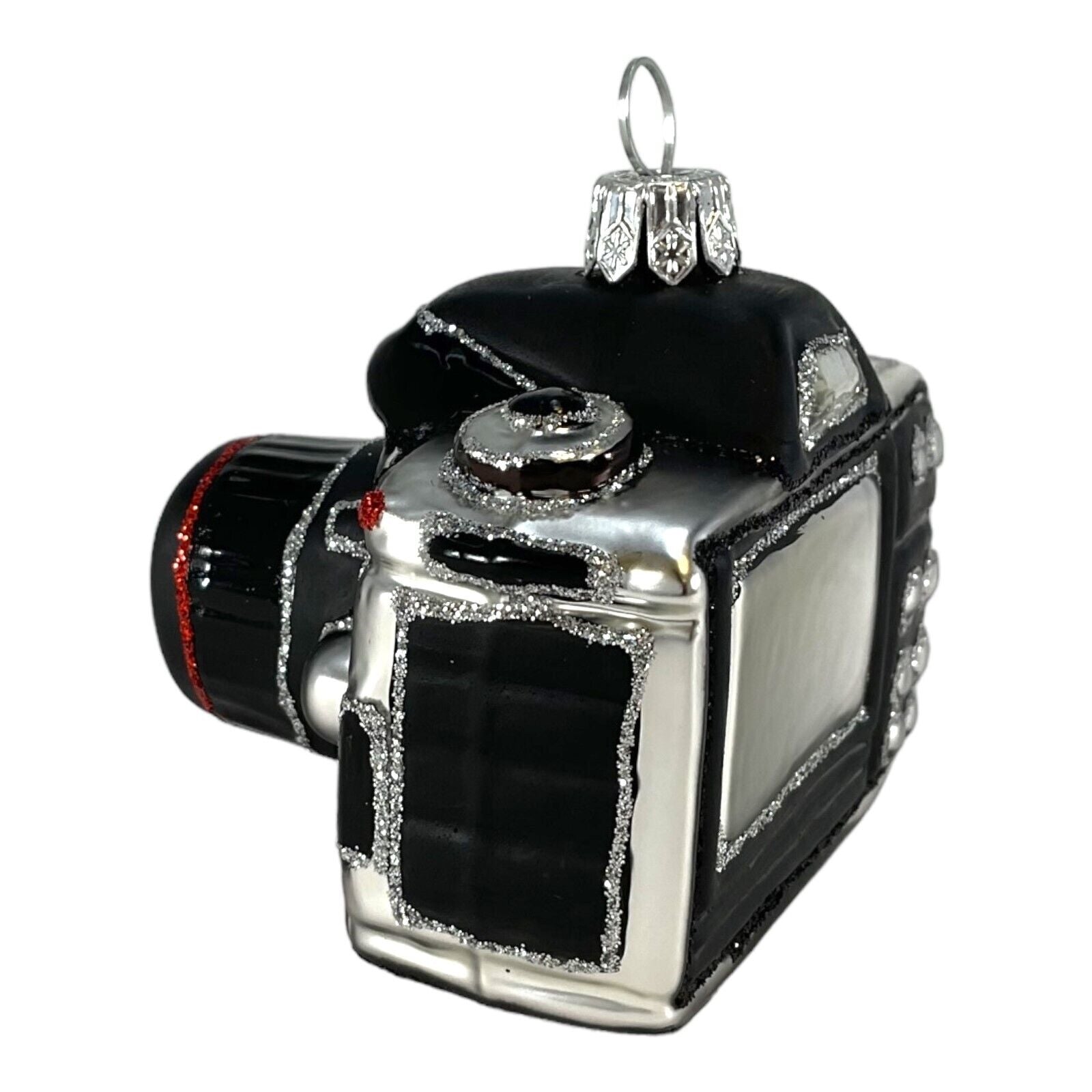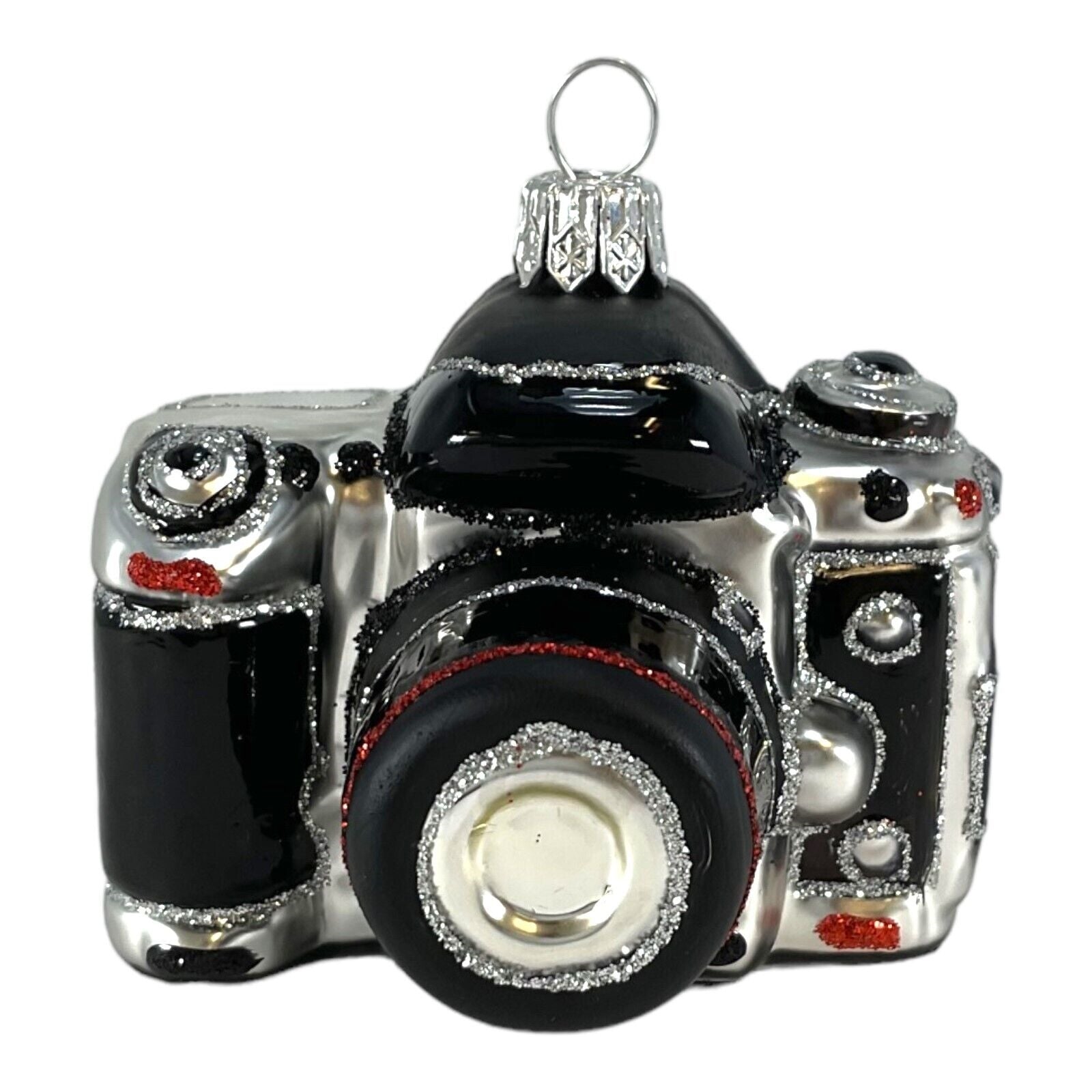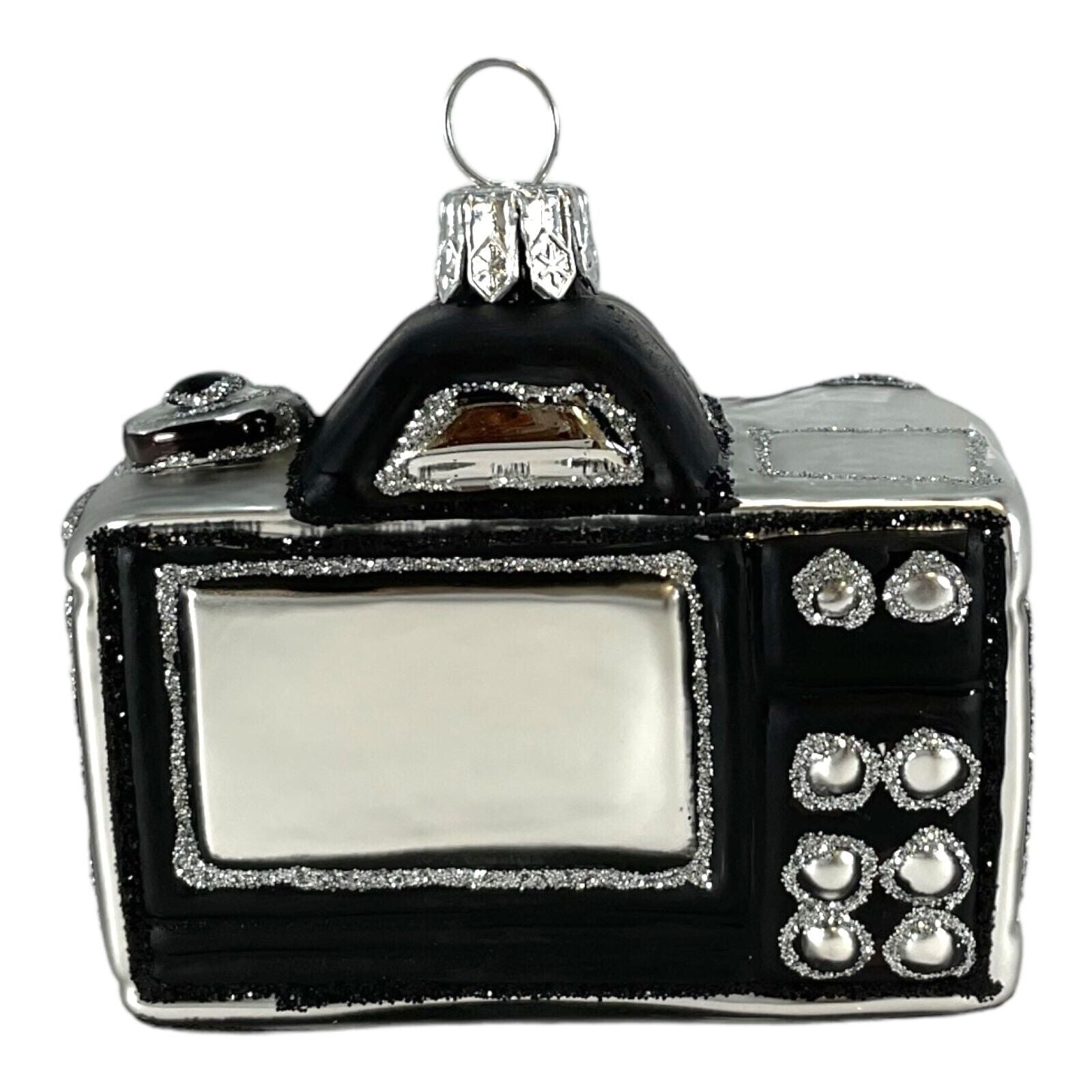 Digital Camera Ornament. Handcrafted in Poland. Hand painted by Polish artisans. Made from mouth blown glass. Approximately 3 inches tall (8 cm). Includes original manufacturers box and packaging. Imported by Pinnacle Peak Trading Company.