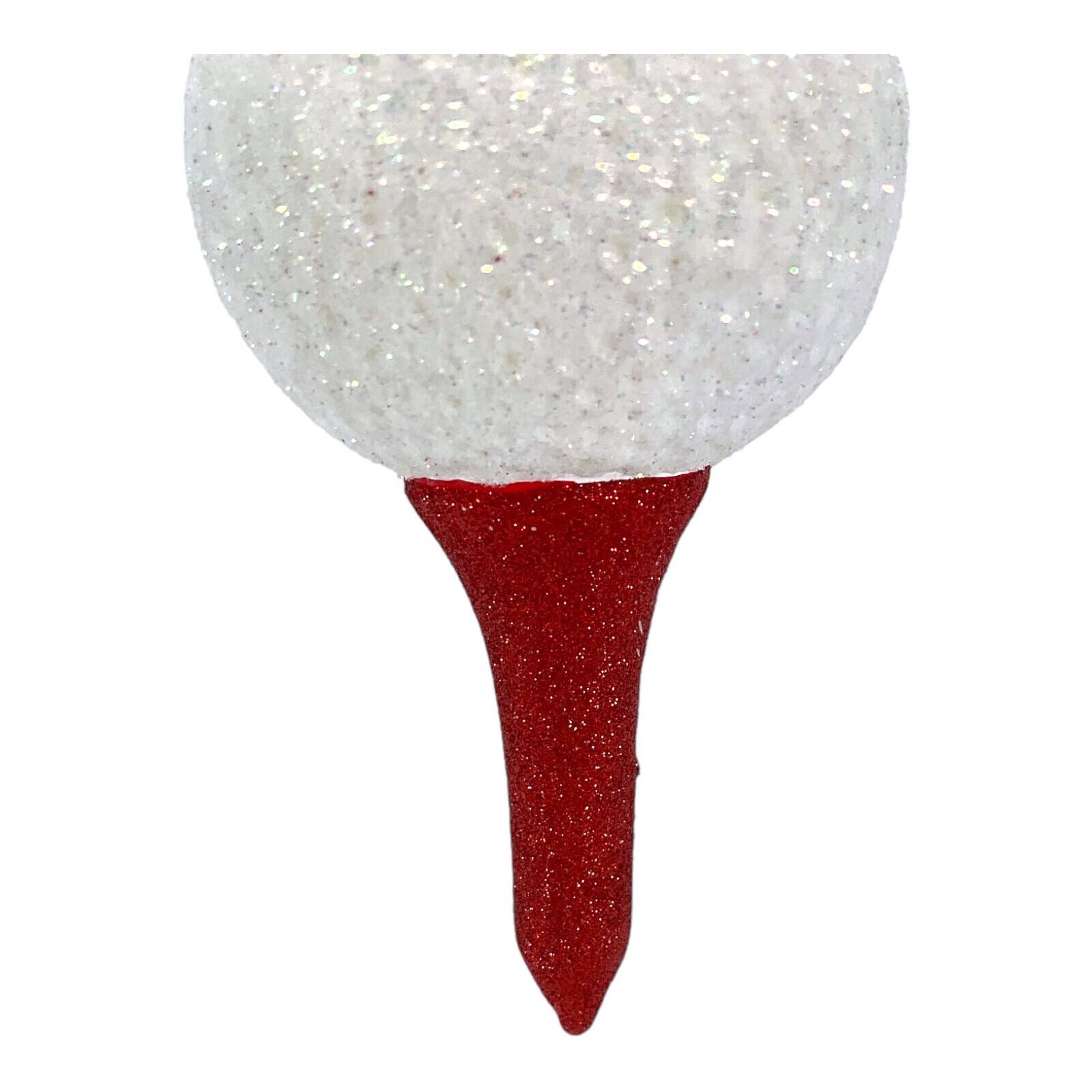 Pinnacle Peak Trading Golf Ball on Red Tee Polish Blown Glass Hanging Christmas Tree Ornament 4 inch