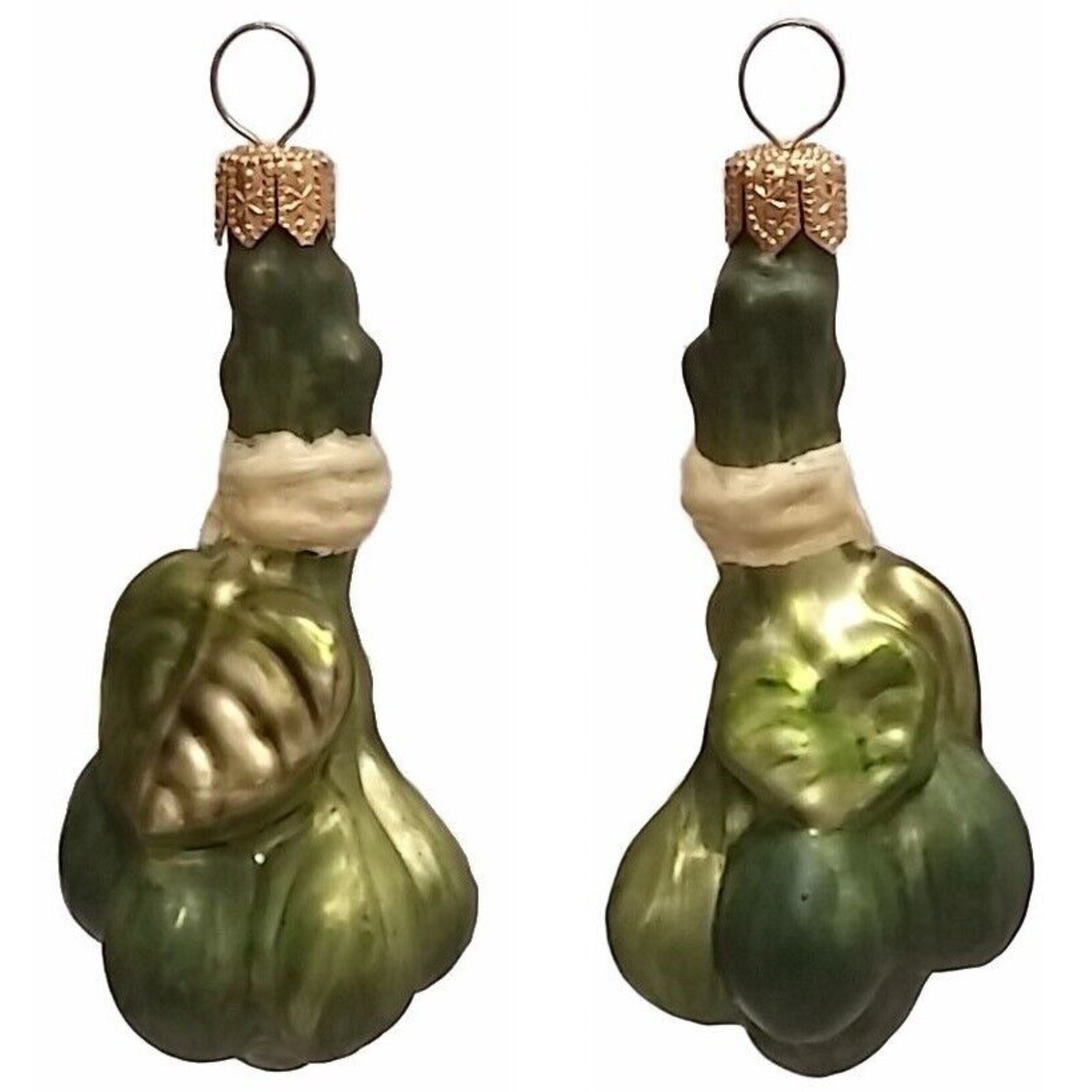 Green Capers Ornaments. Set of 2. Handcrafted in Poland. Hand-painted by Polish artisans. Made from mouth blown glass. Approximately 1.25 x 1.25 x 3 inches. Includes original Pinnacle Peak Trading box and packaging. Imported by Pinnacle Peak Trading.