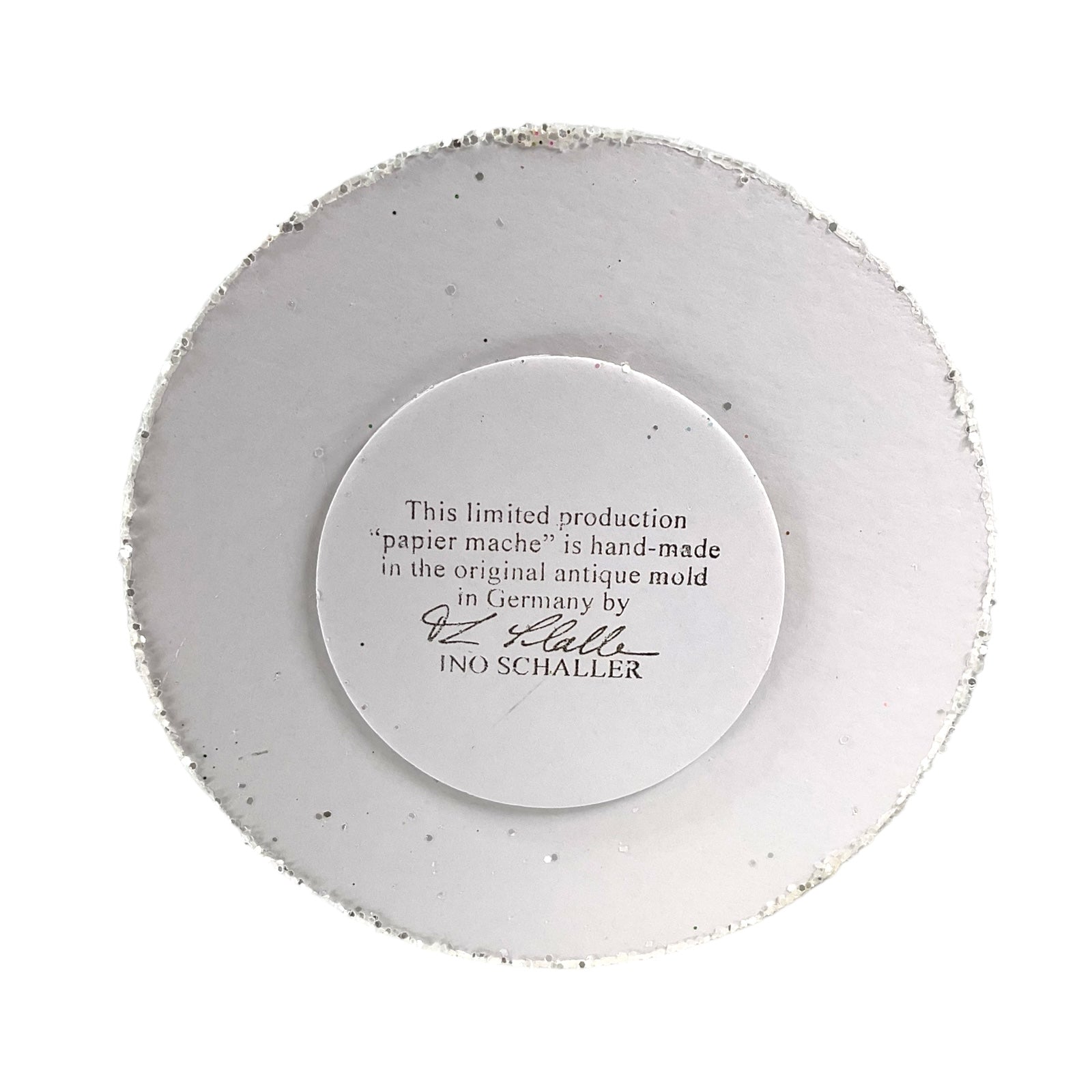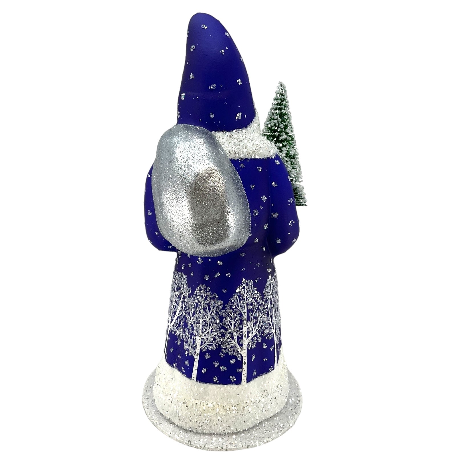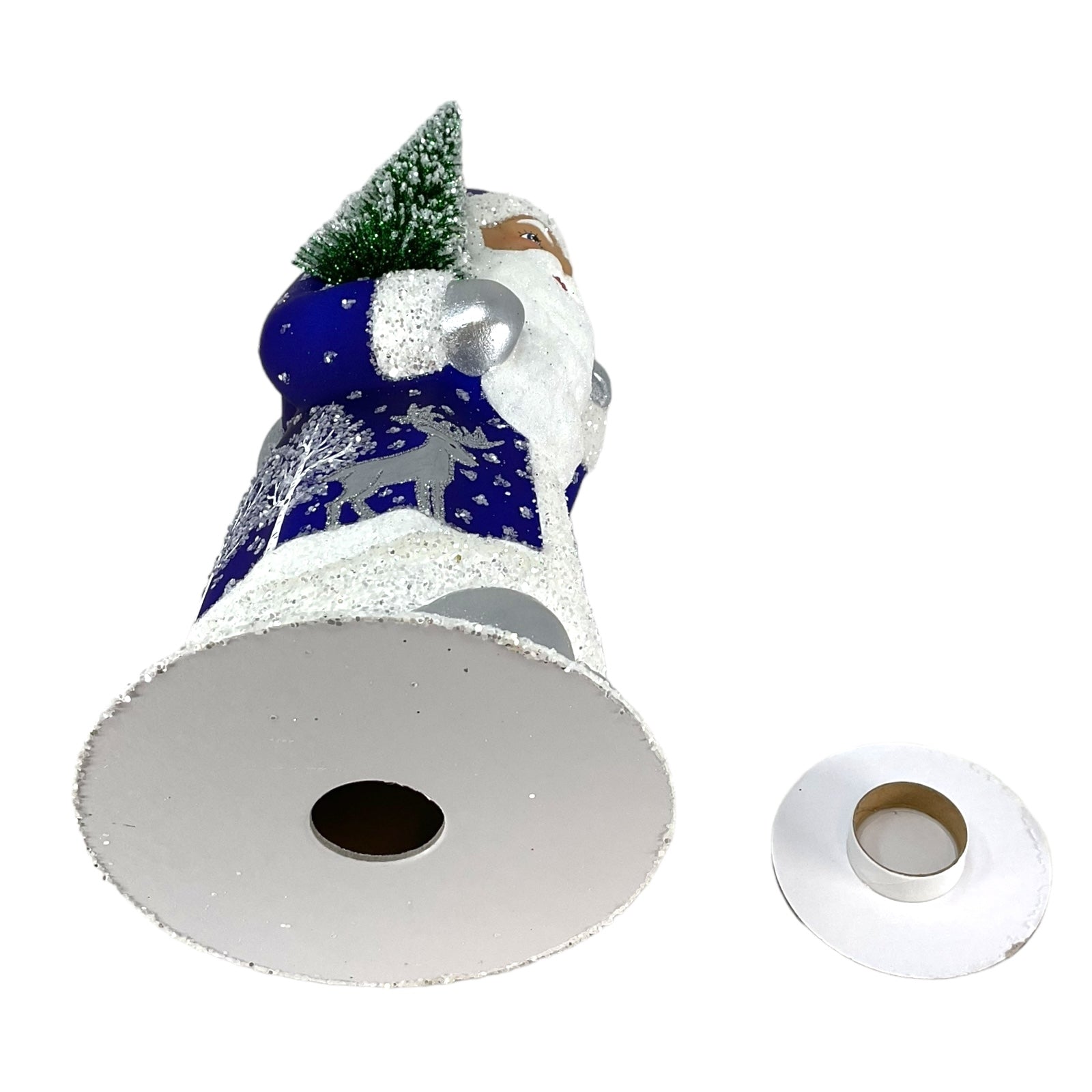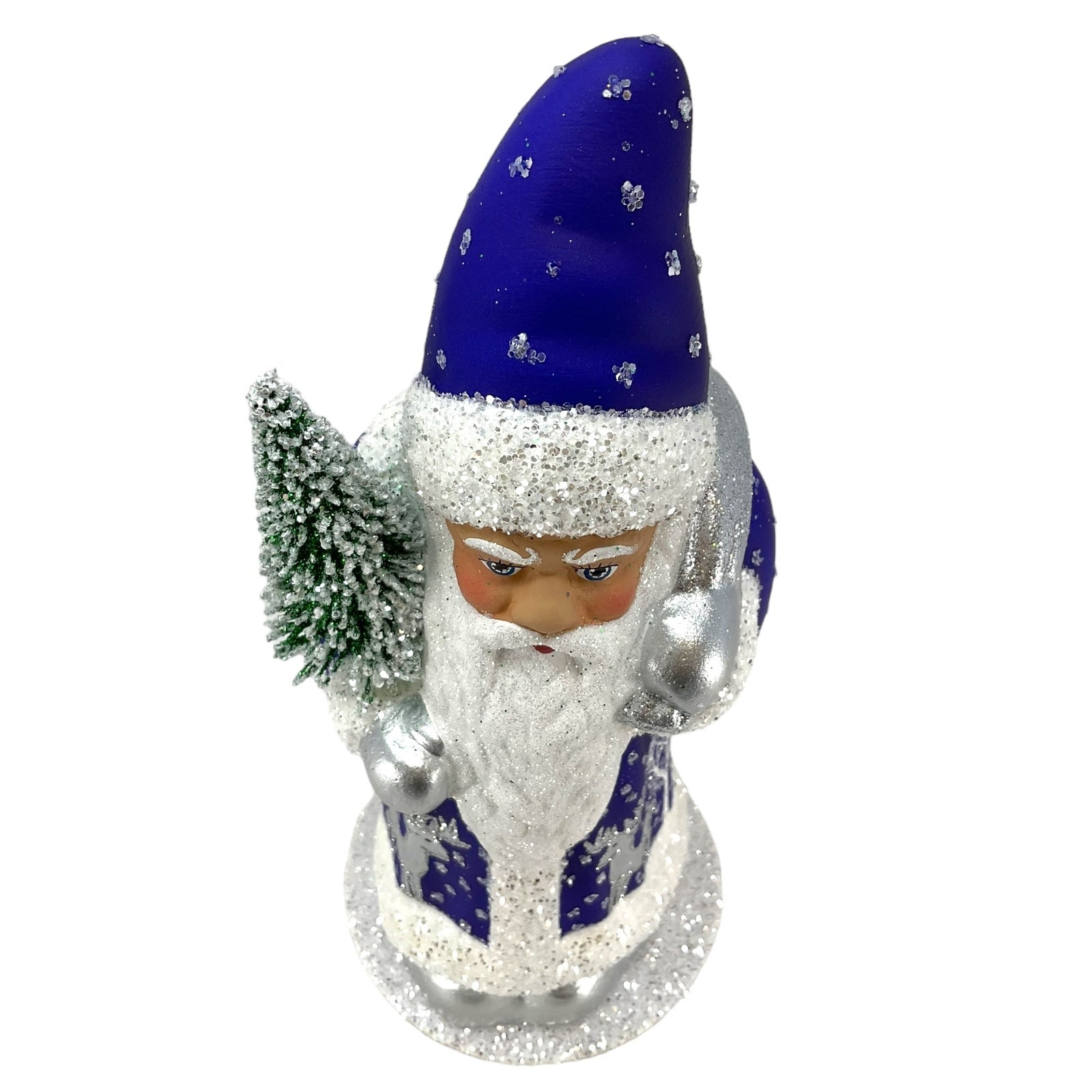 Deep Blue Santa with Reindeer Decor German Paper Mache Candy Container. Each piece is signed and stamped on the bottom with the following "This limited production "papier mache" is hand-made in the original antique mold in Germany by INO SCHALLER.". Made from Paper Mache and is hand-painted with use of beads and glitter. Handcrafted in Bavaria Germany. Approximately 4.75 x 4.75 x 10.25 inches. Manufactured for Pinnacle Peak Trading by Ino Schaller.