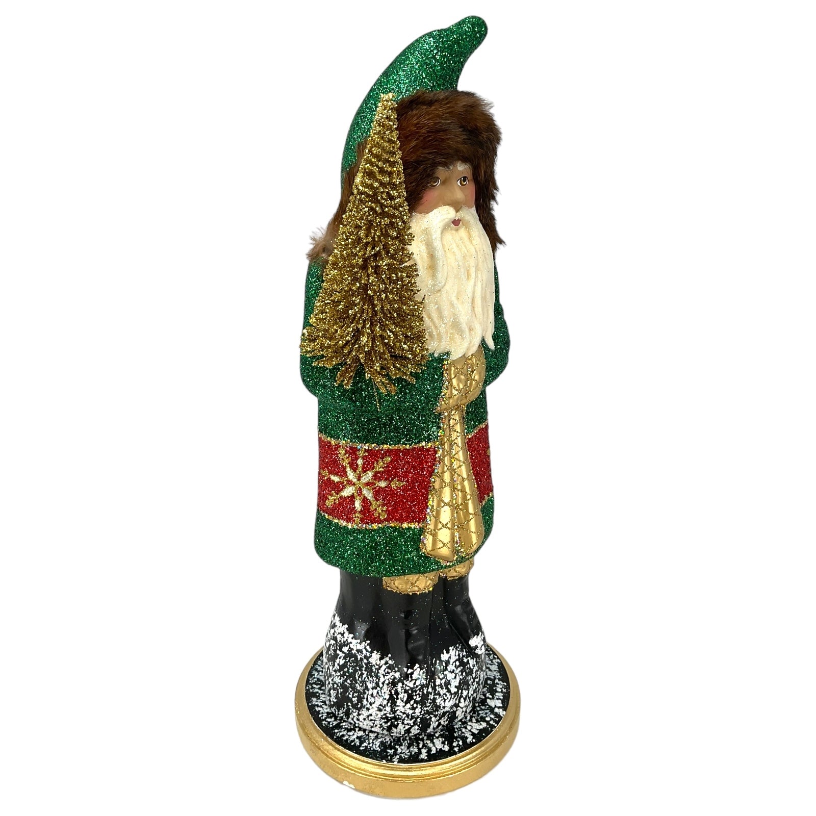 Pinnacle Peak Trading Ino Schaller Forest Green Santa with Gold Tree Large German Paper Mache