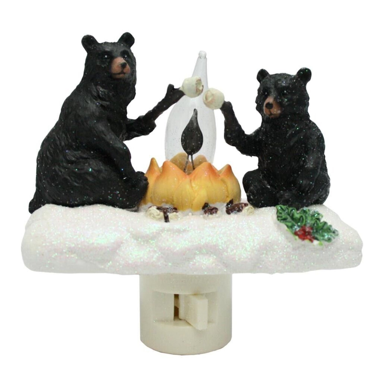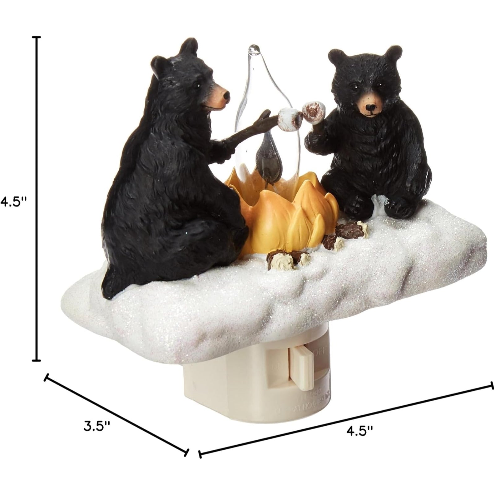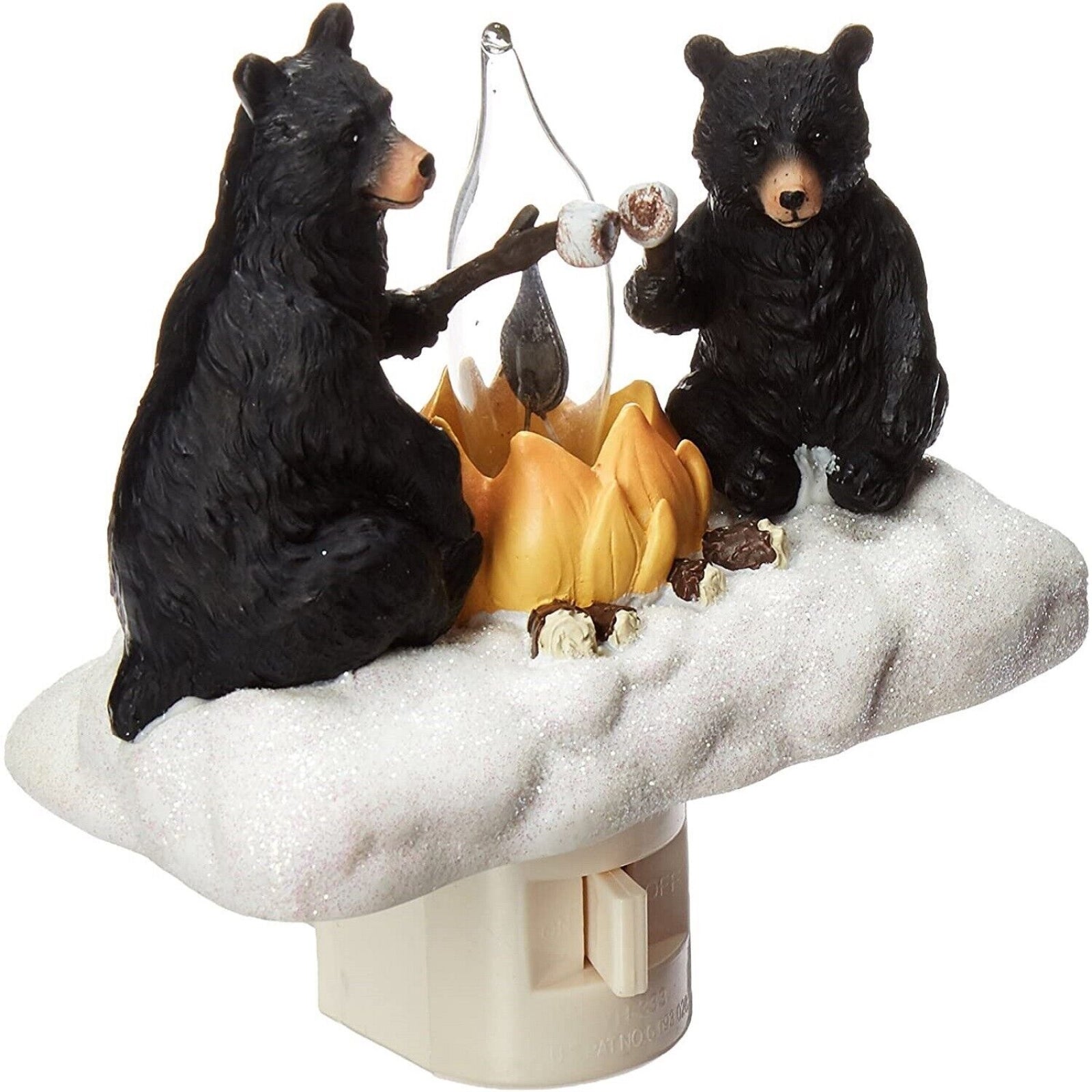 Roman Black Bears Roasting Marshmallows Around Campfire Flickering Flame Plug in Night Light 4.5 Inch