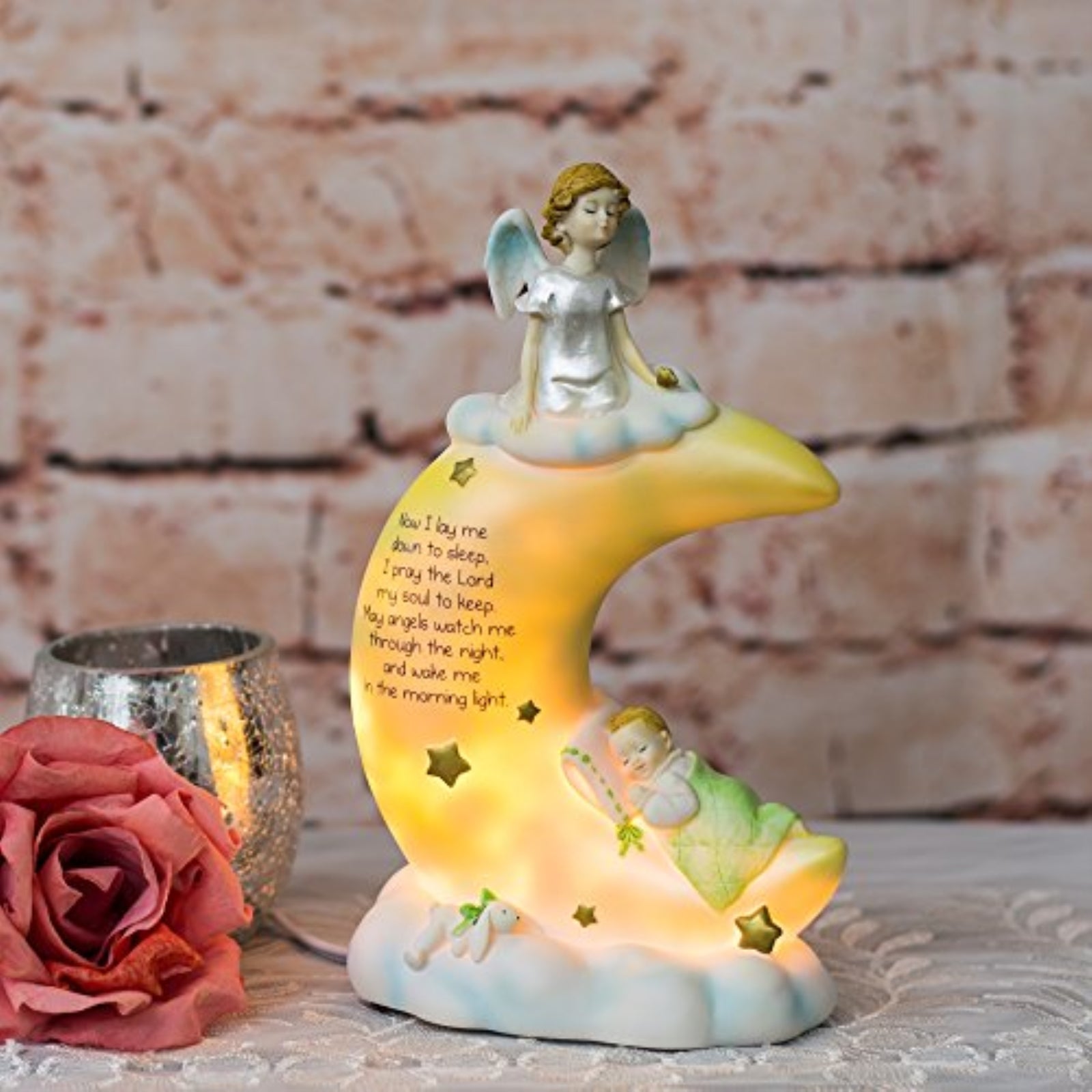 Roman Sweet Dreams Angel on the Moon Night Light with Cord 8 inch