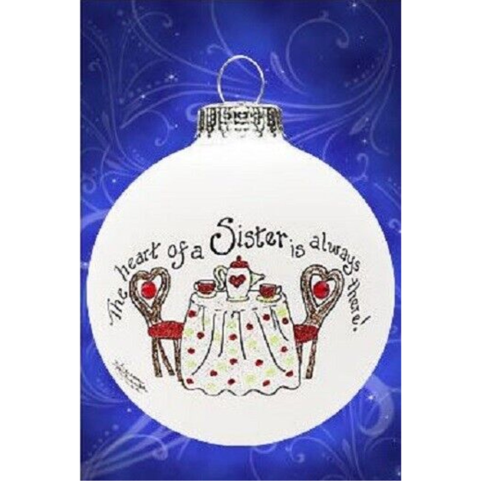 The Heart of a Sister is Always There Made in USA Glass Christmas Ornament